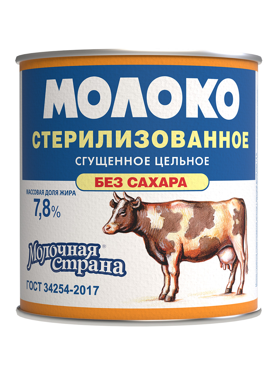 Молоко концентрированное стерилизованное без сахара Молочная Страна ГОСТ 7,8 % ж/б 300 гр 5 шт