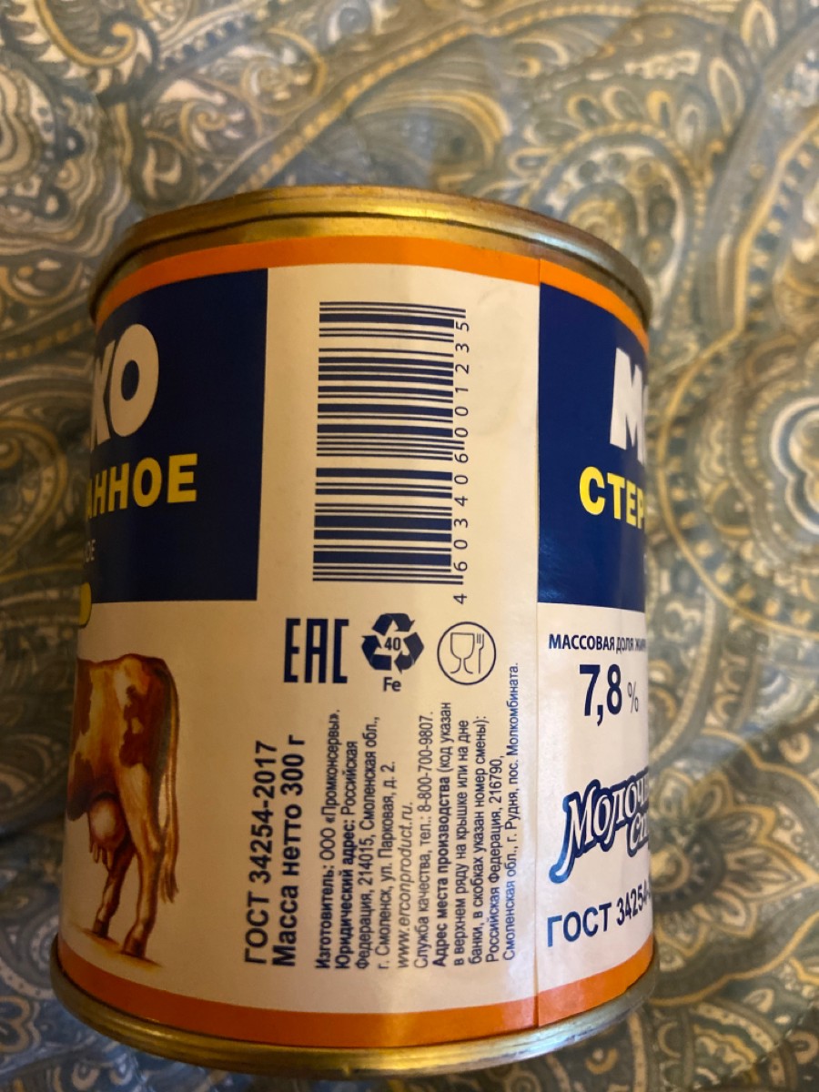 Молоко Молочная страна концентрированное без сахара 7,8%, 300г