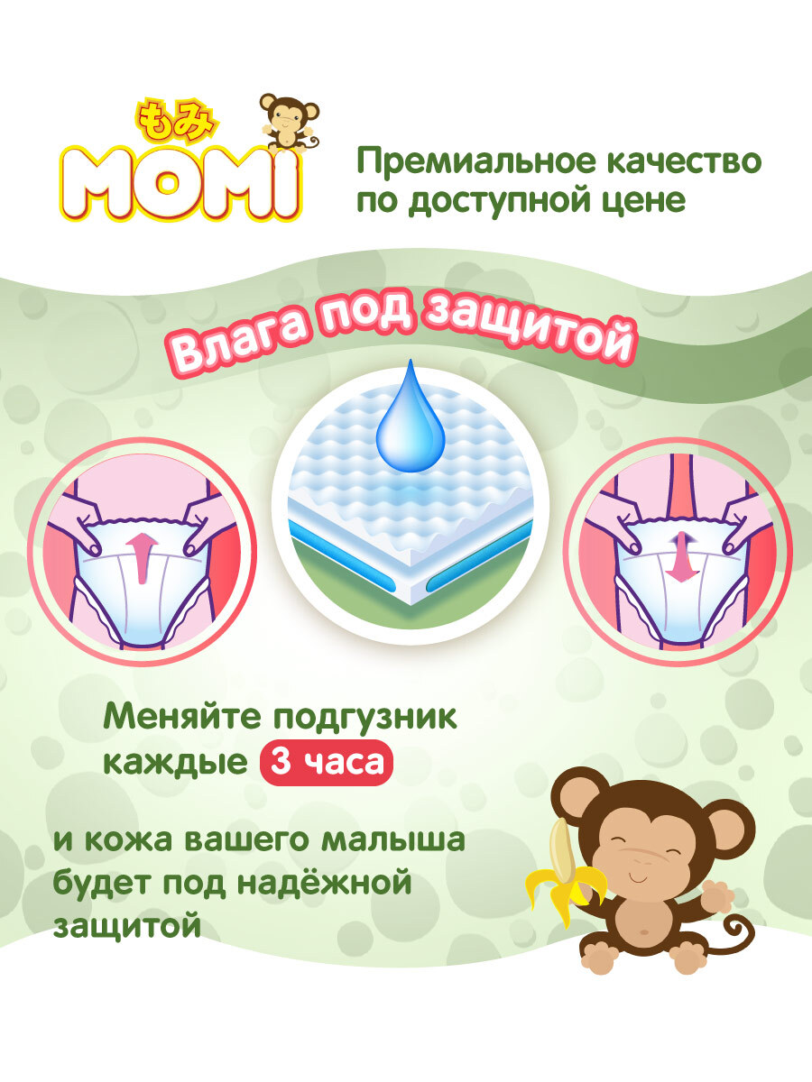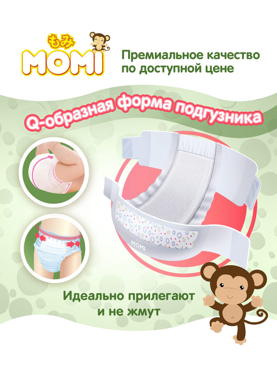Momi японские подгузники детские 6-11 кг размер 3 M 62 шт MONKEY