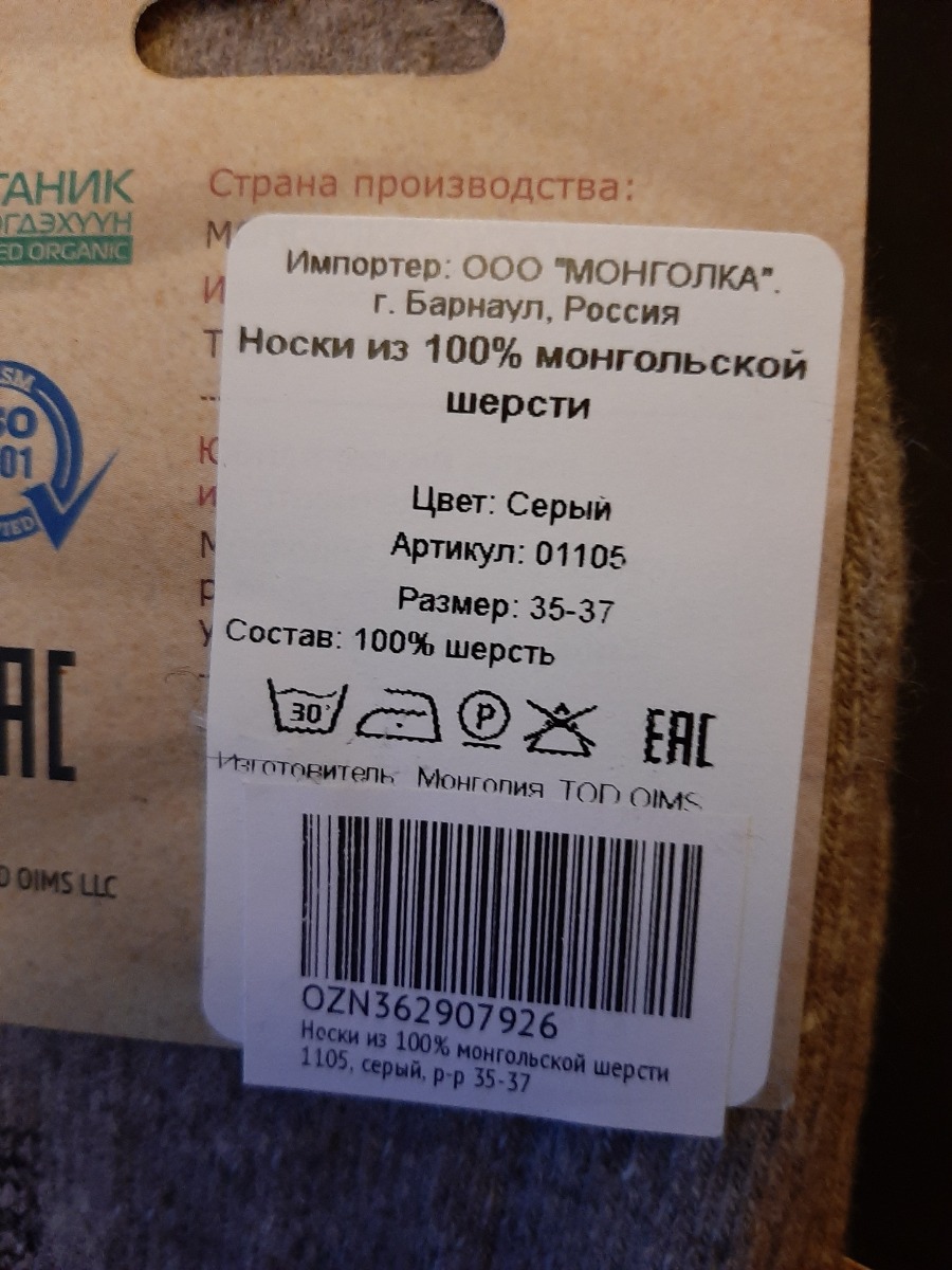 Носки, Термоноски Монголка, 1 шт