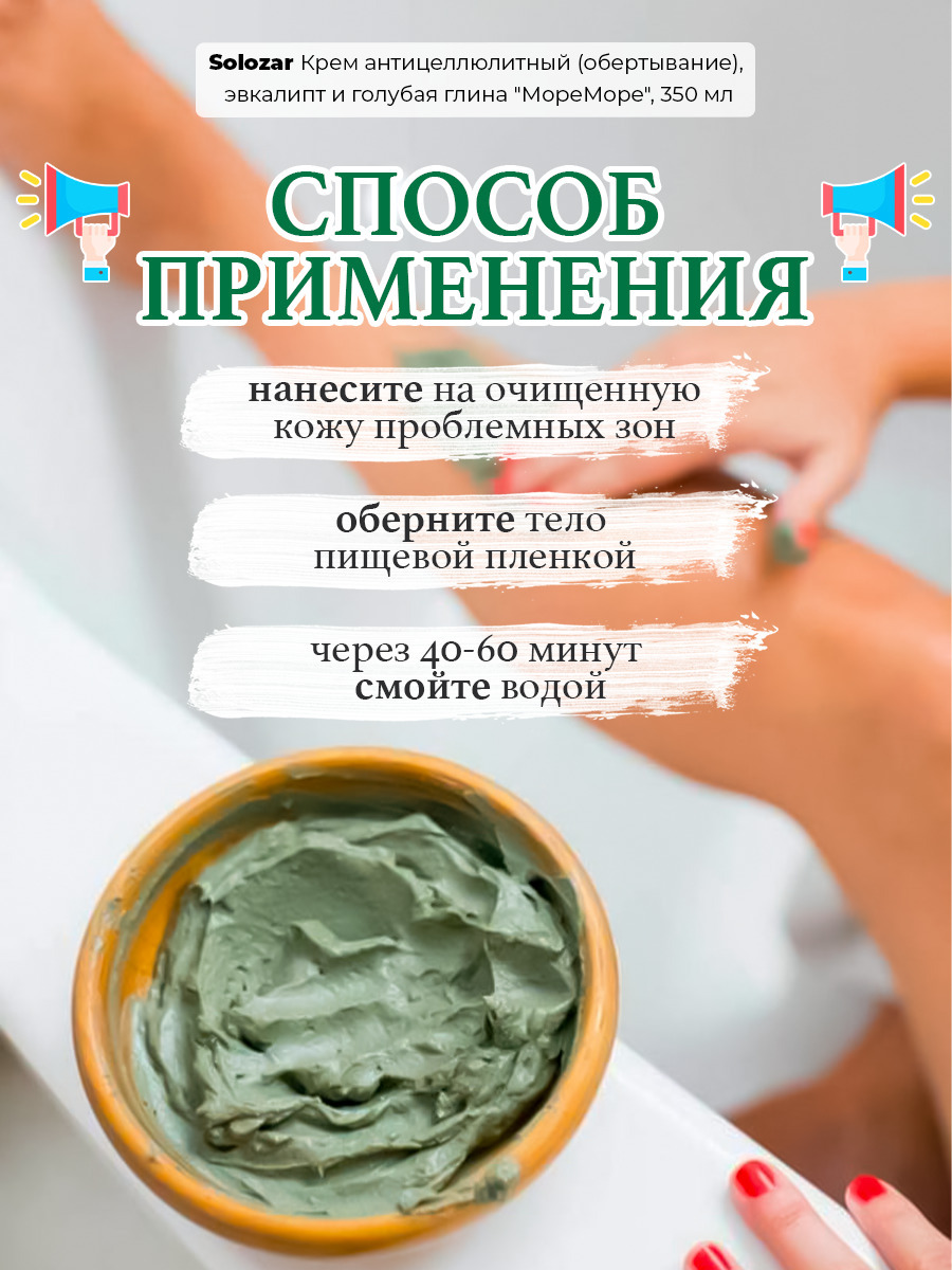 Solozar Крем антицеллюлитный (обертывание), эвкалипт и голубая глина "МореМоре", 350 мл