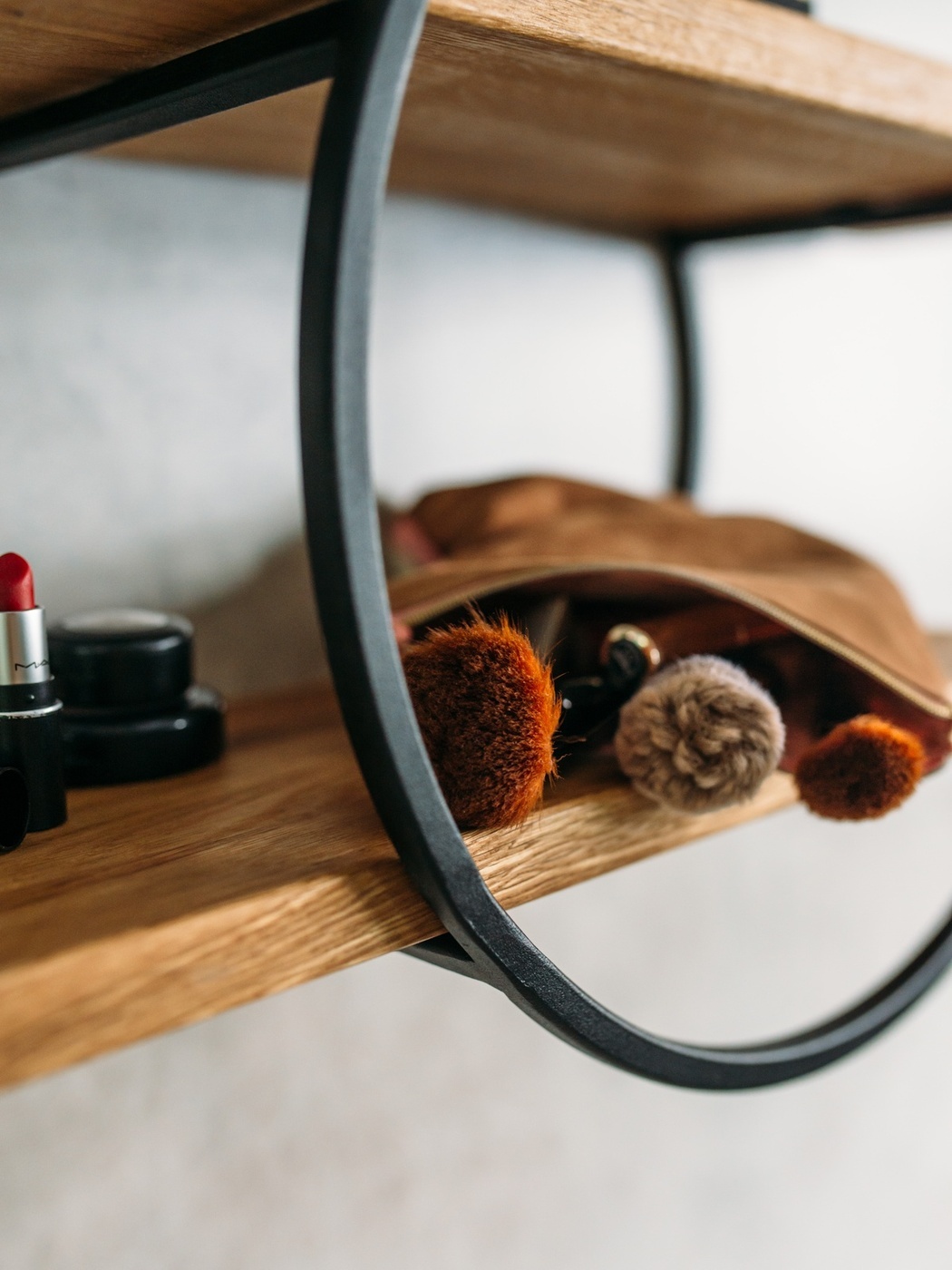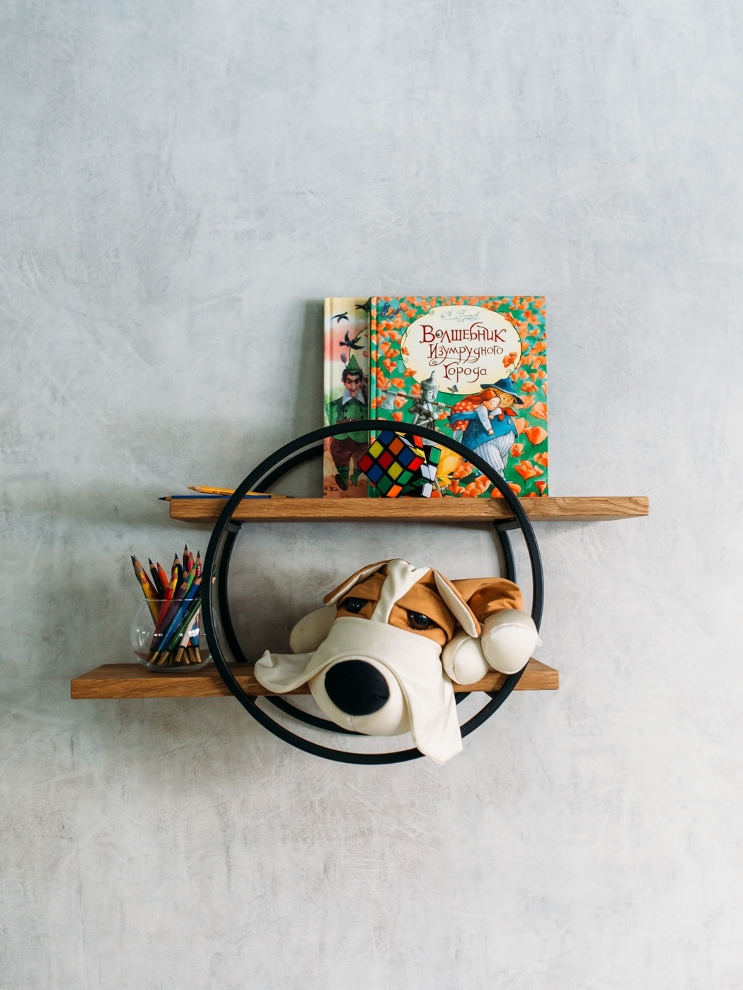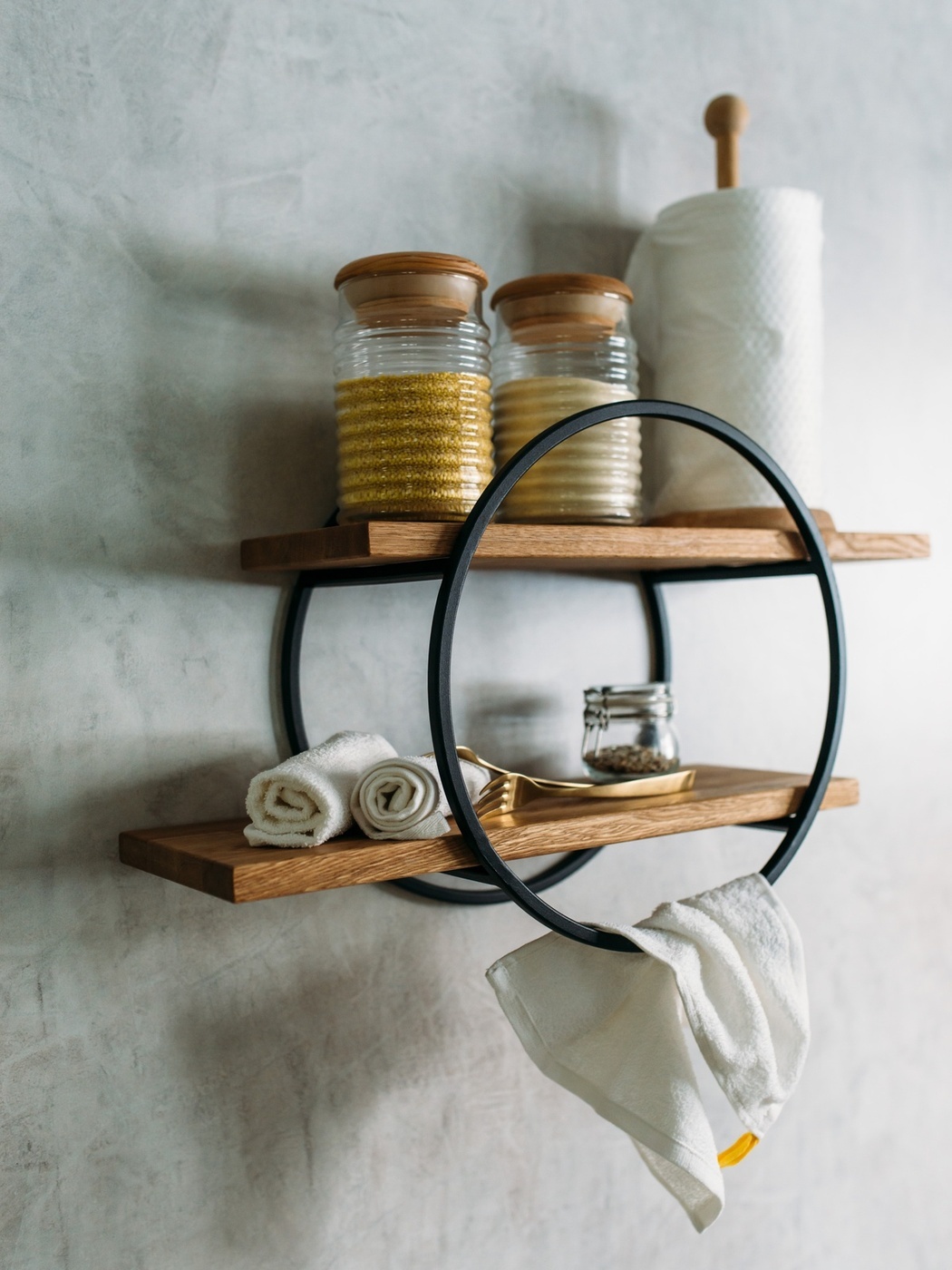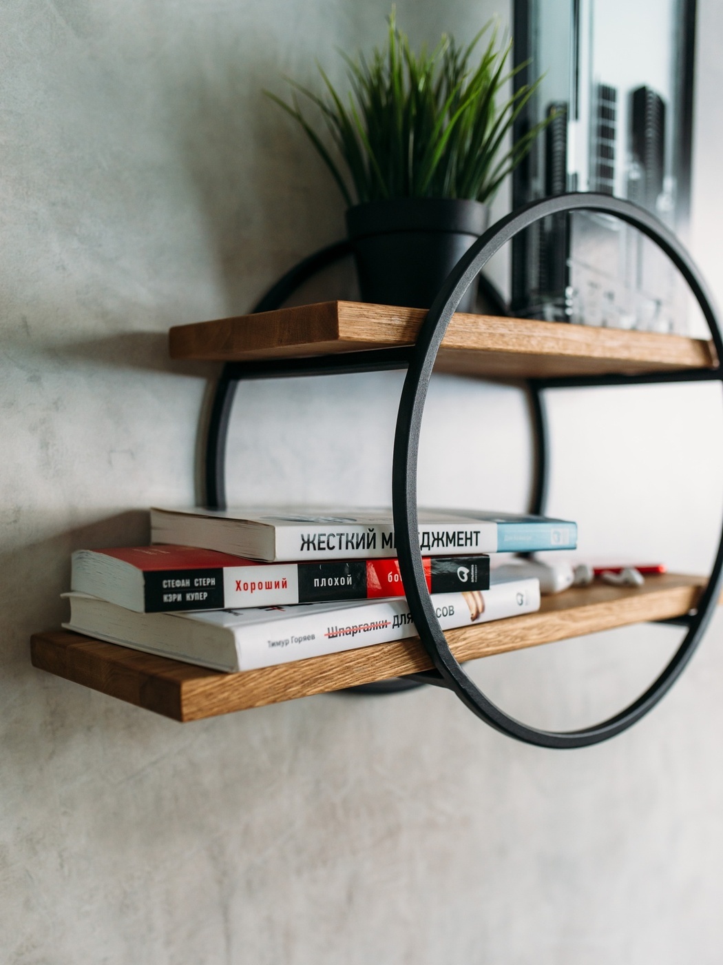 Полка MoreThanHome Настенная Прямая массив дуба, 2х уровневая для цветов, Круг медный металл, навесная, 50.0х16.8х35.0 см, 1 шт.