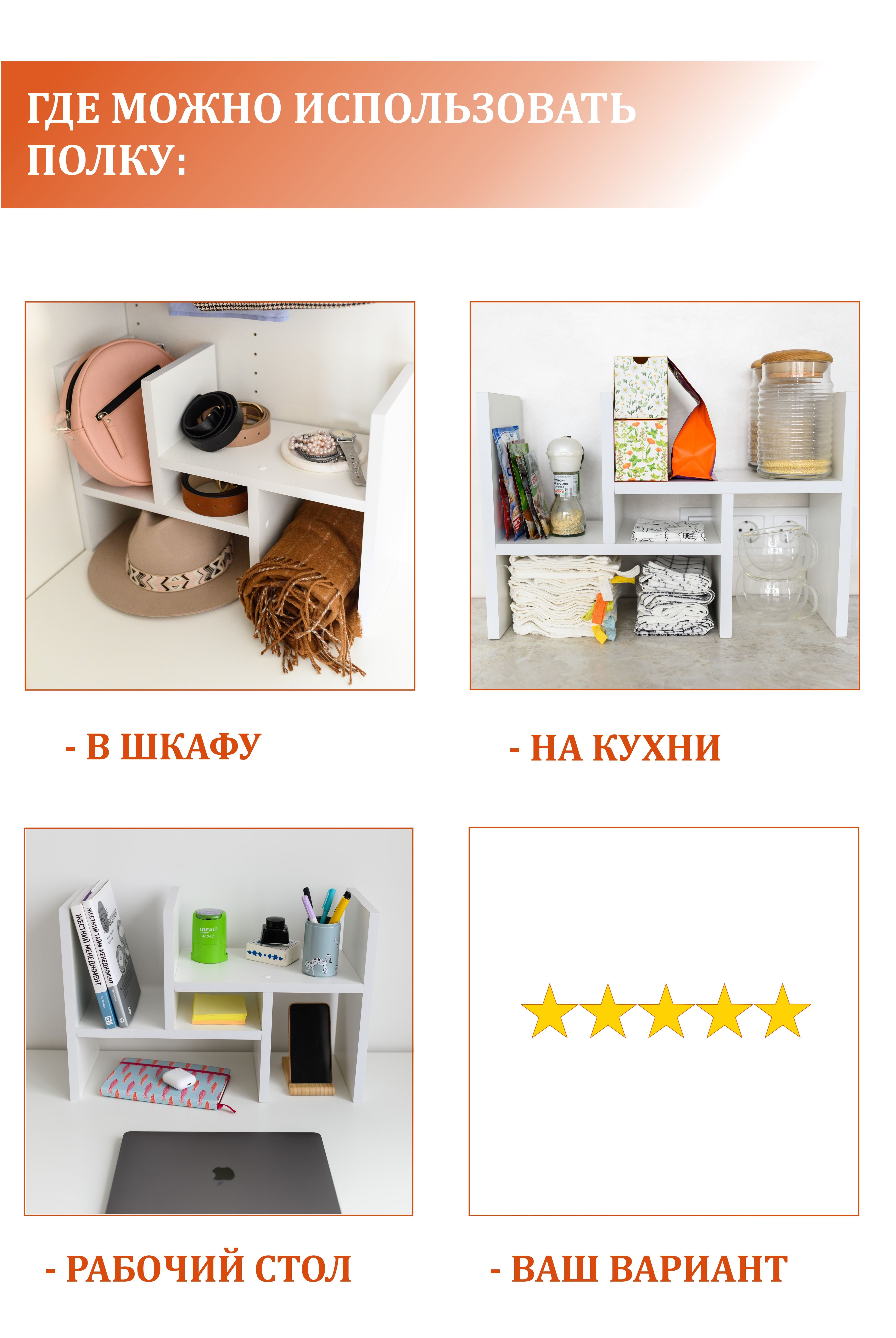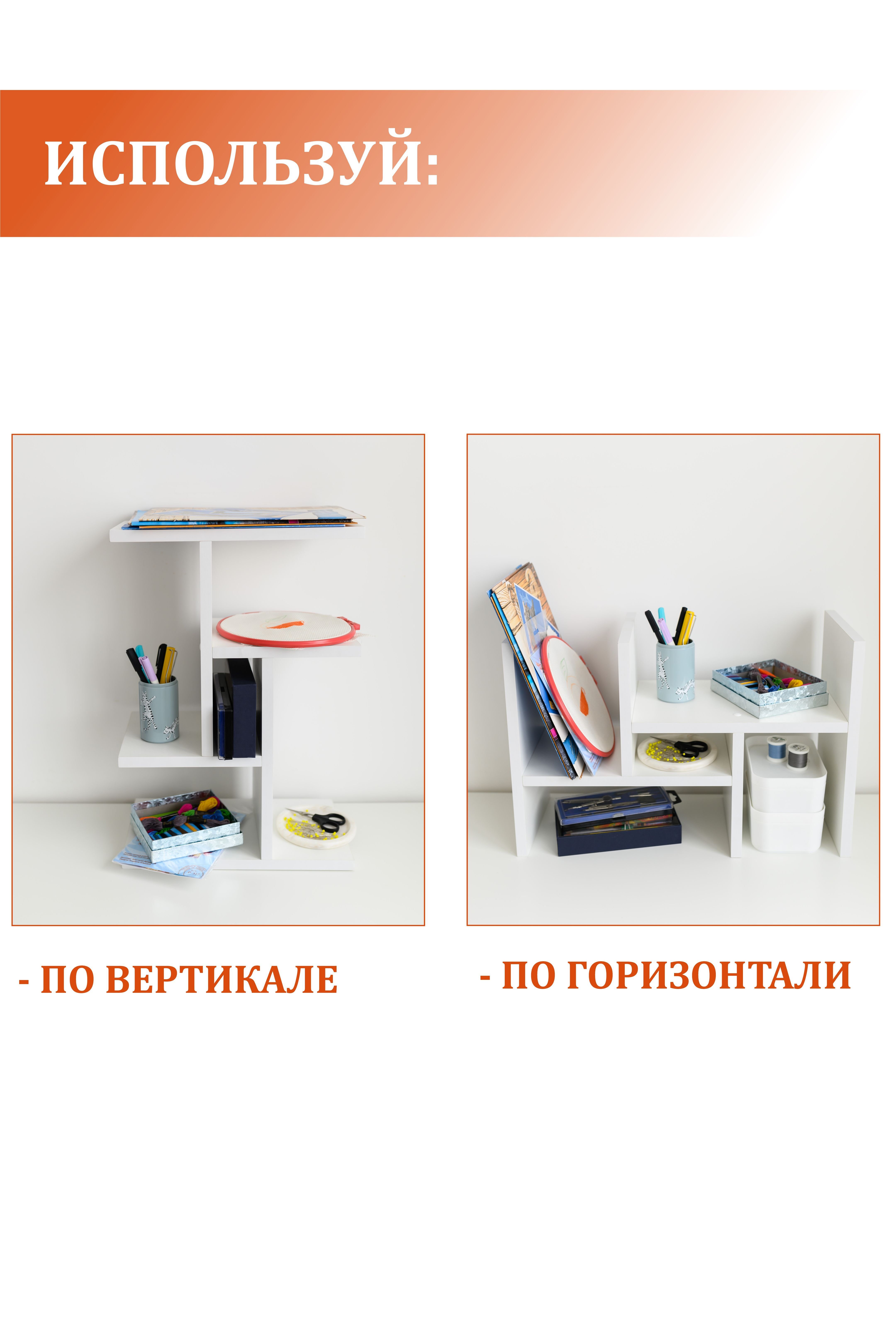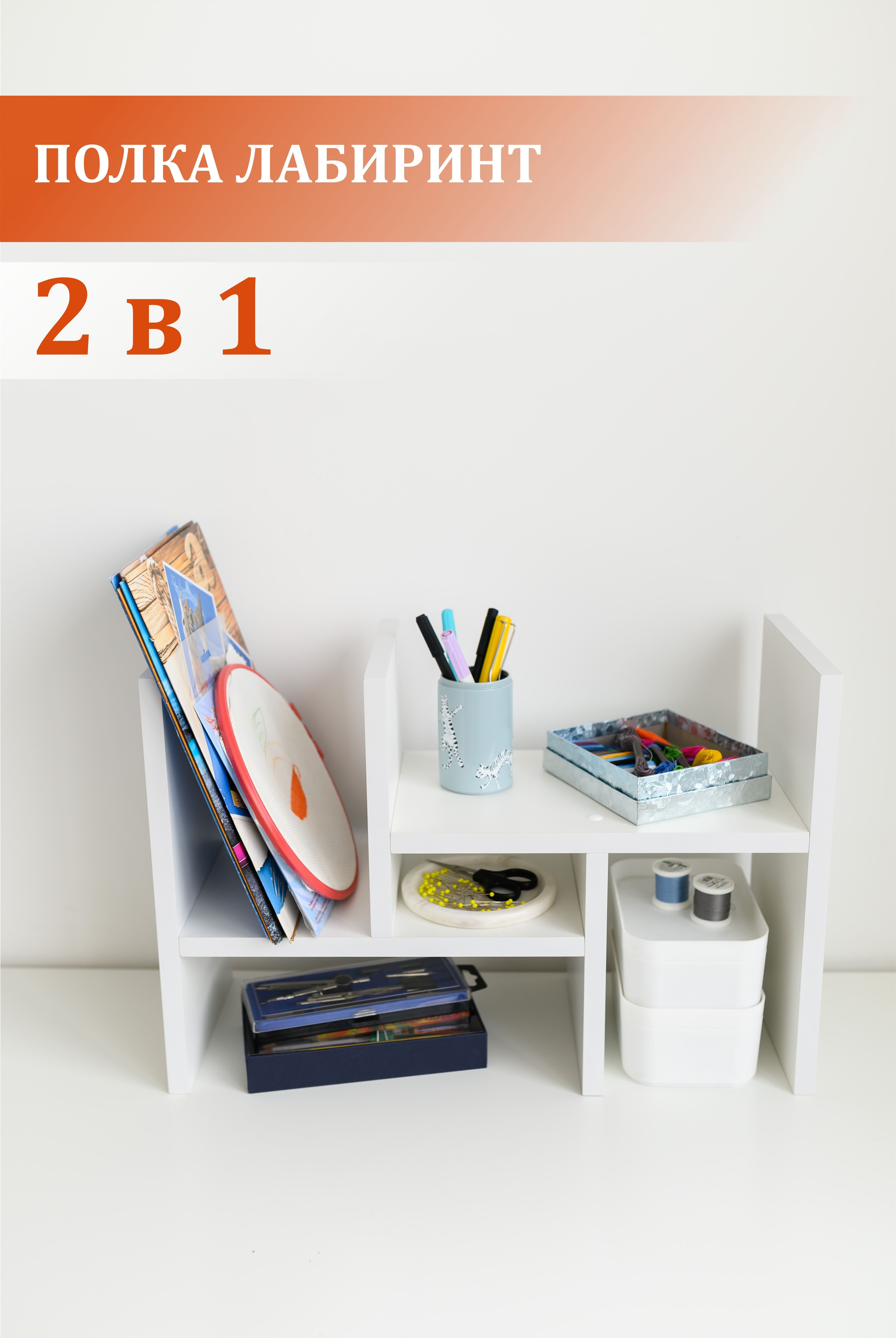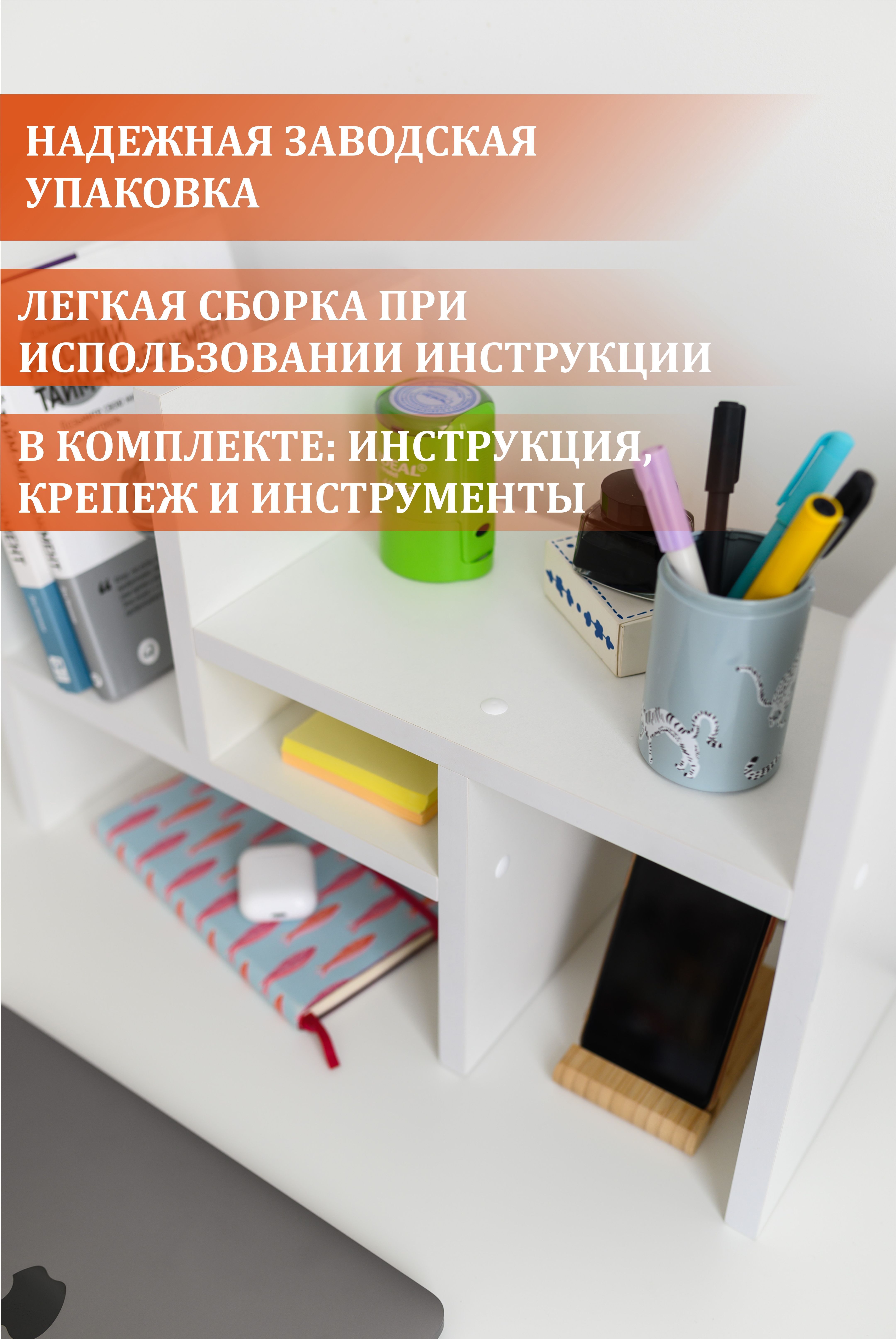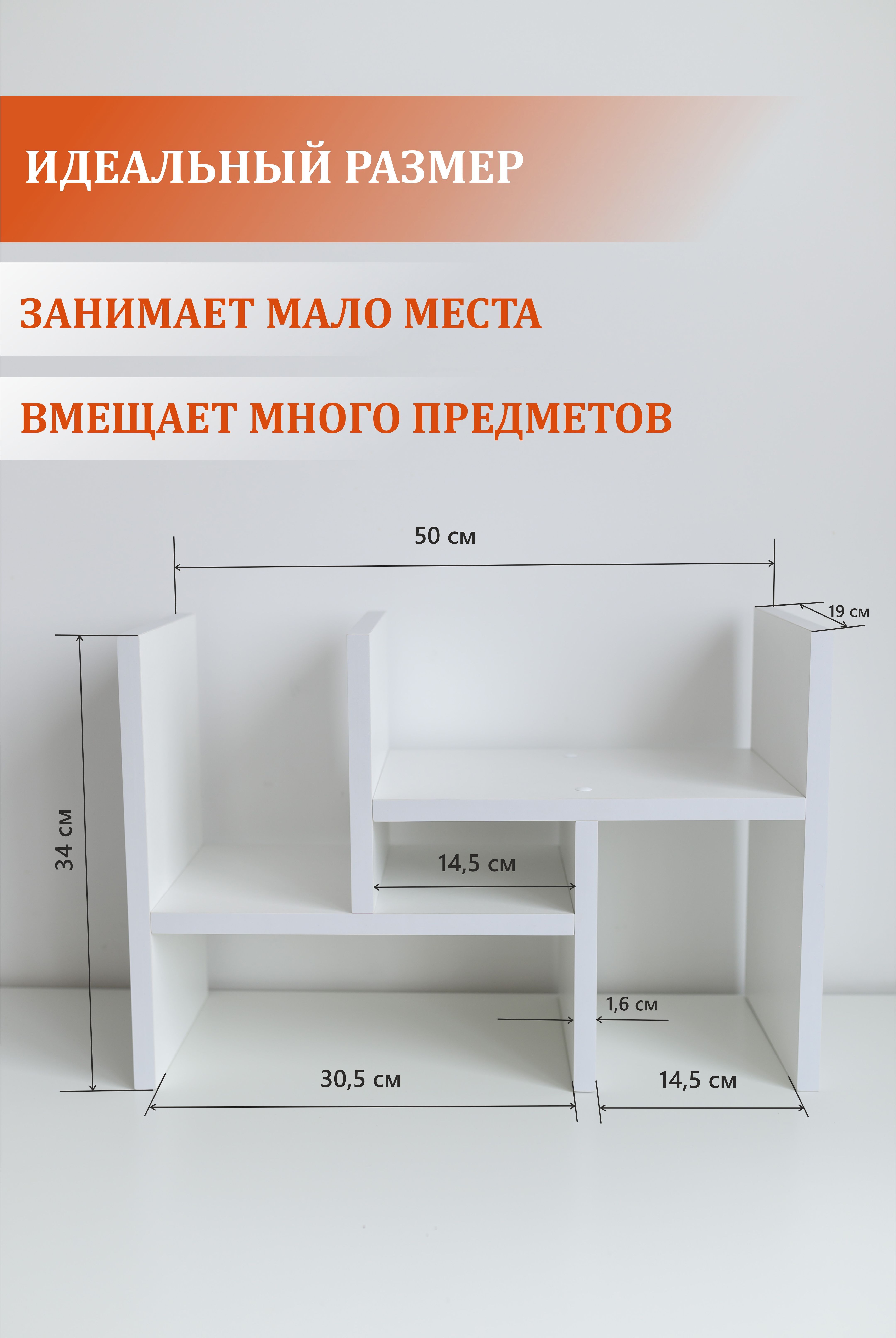 Полка MoreThanHome Настольная Прямая для книг, канцелярии, 50х19х34 см, 1 шт.