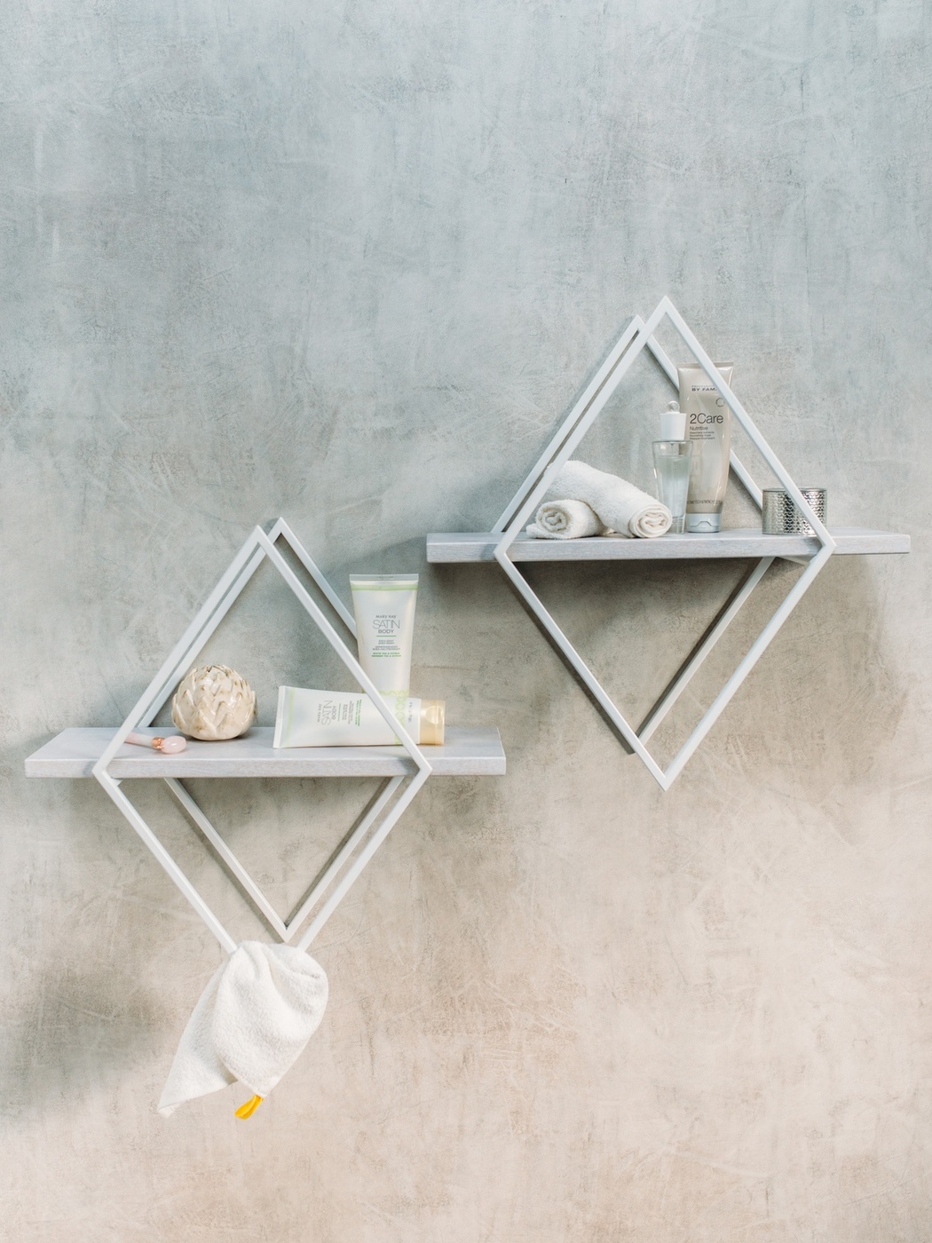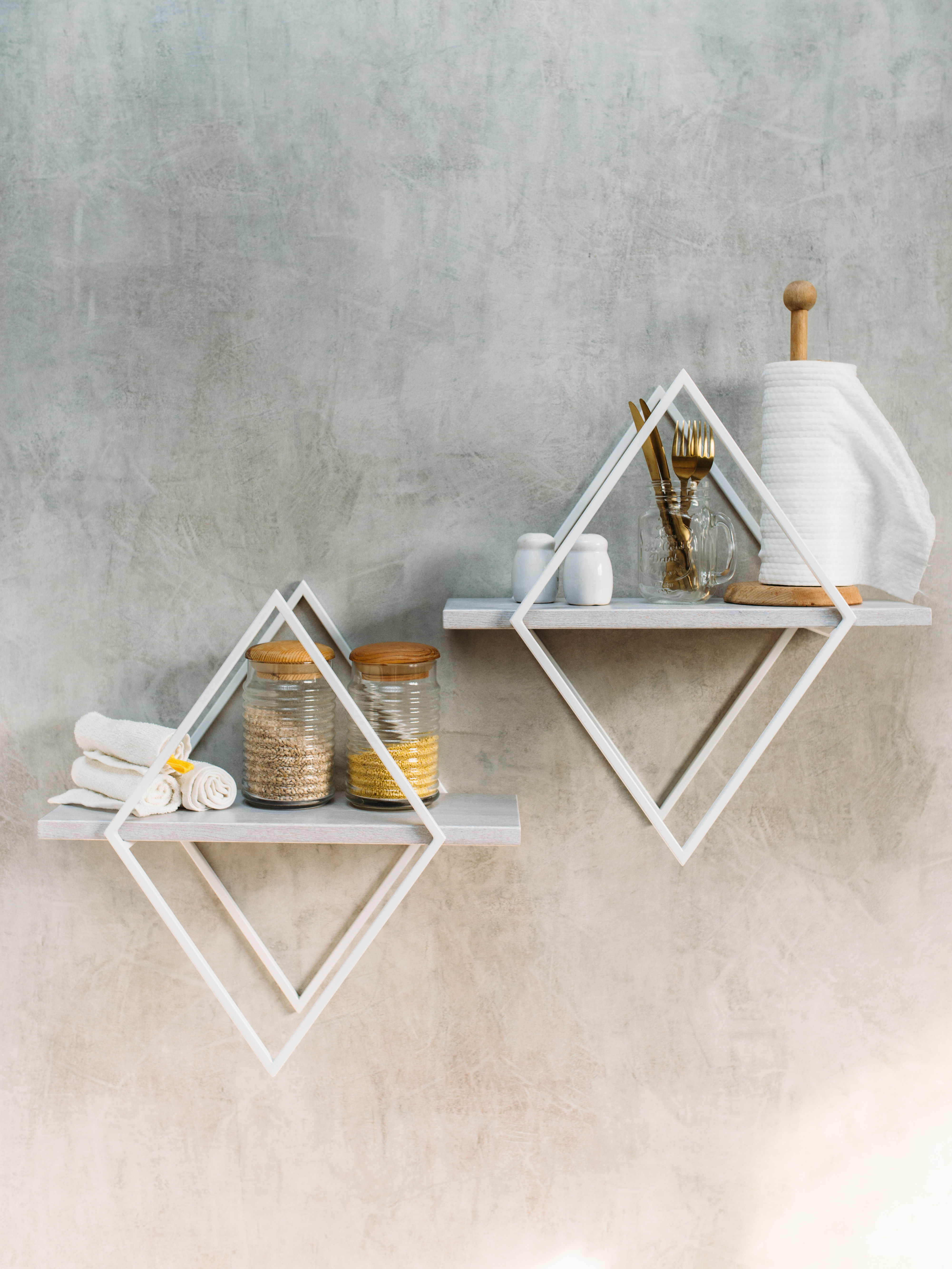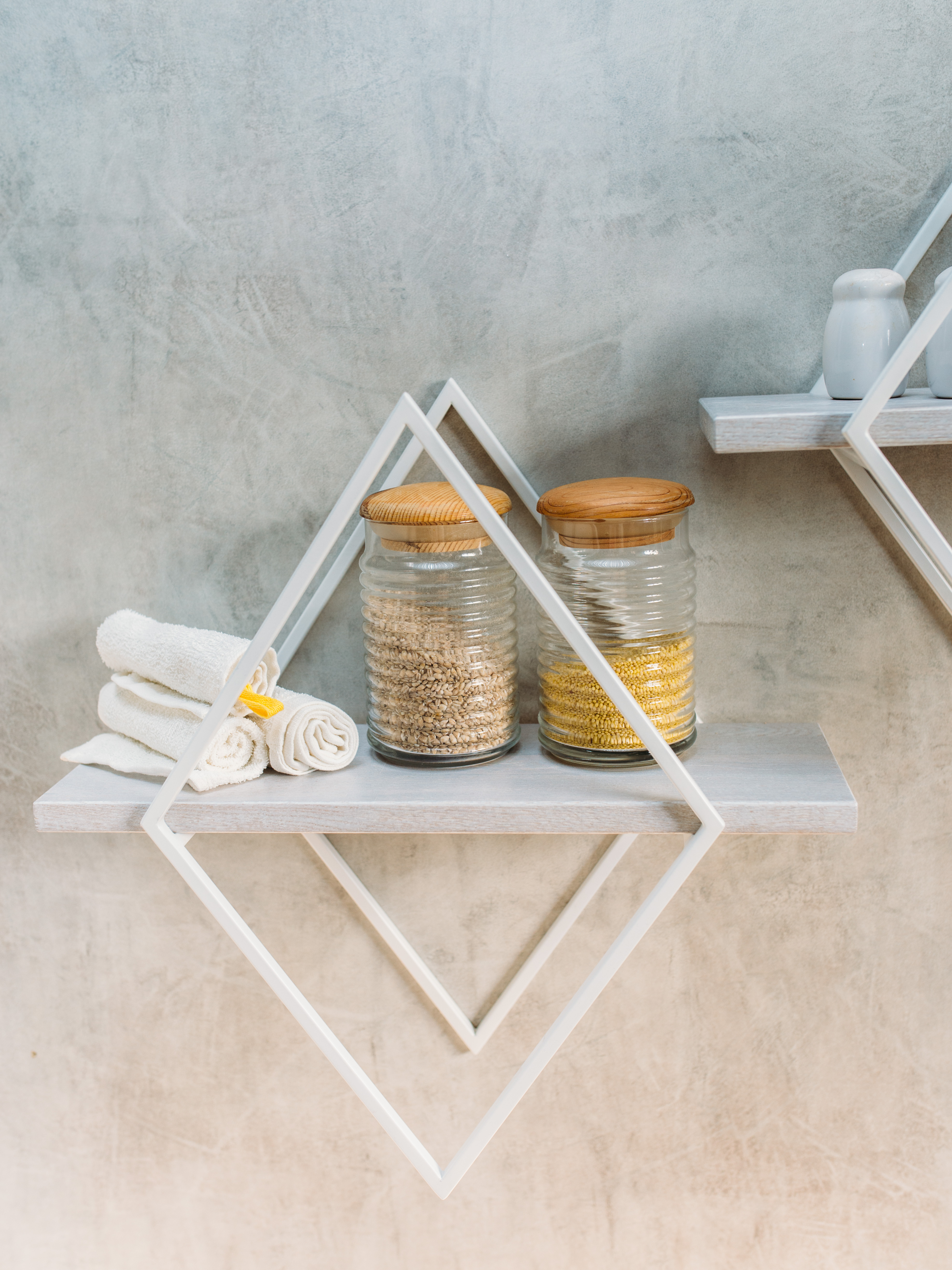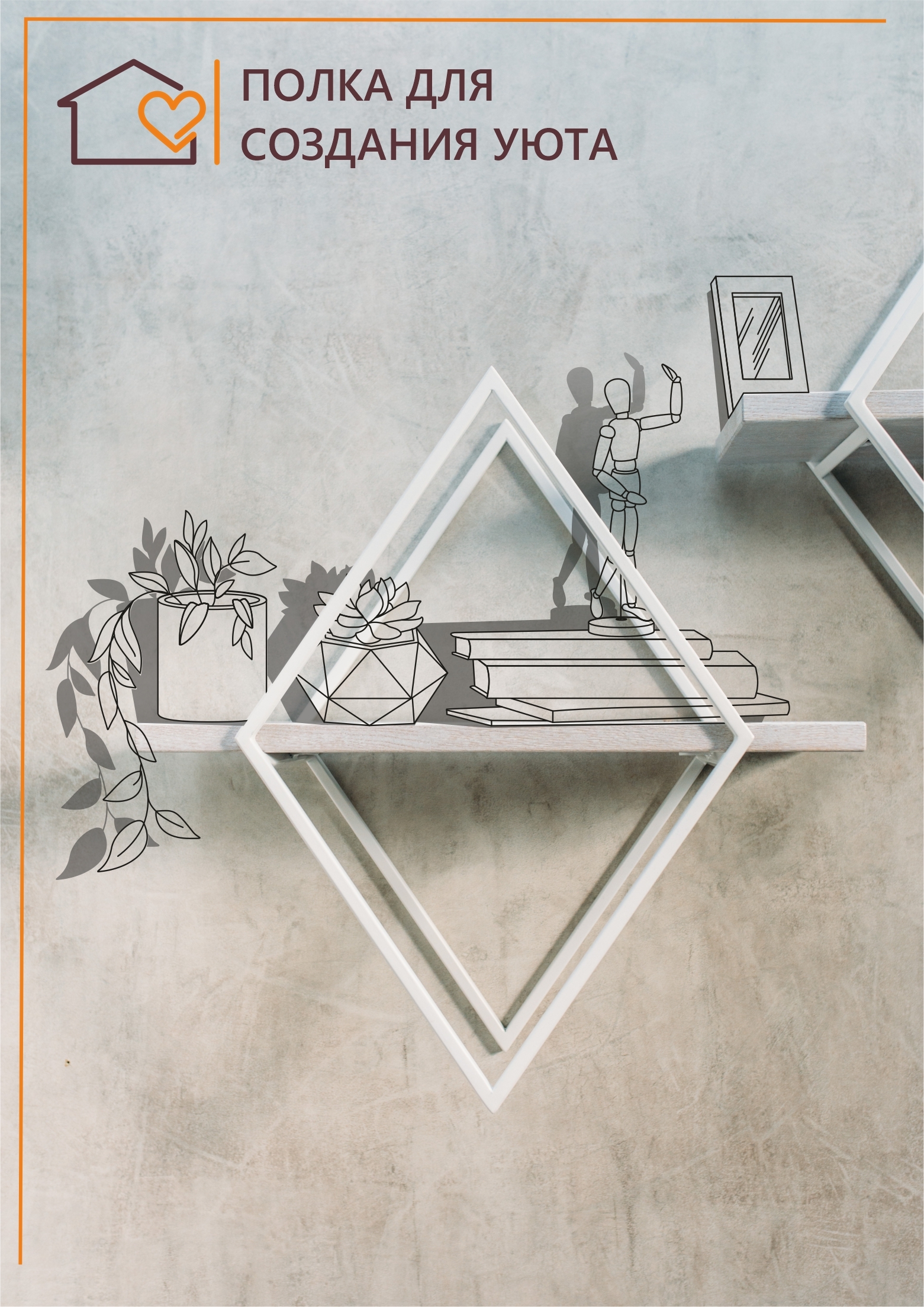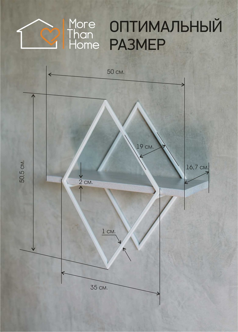 Полка MoreThanHome Настенная Прямая массив дуба, ромб белый металл, навесная для книг, 50.0х16.7х50.5 см, 1 шт.