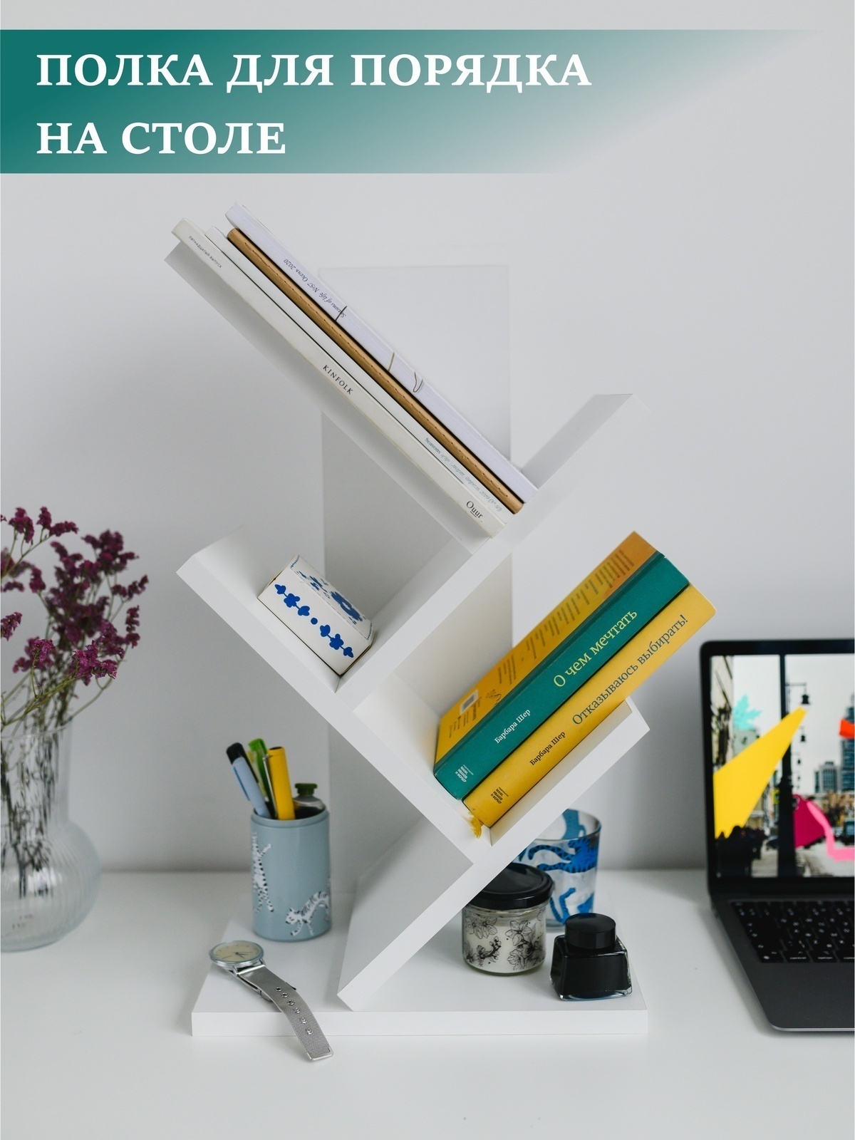 Полка MoreThanHome Настольная Елочка для книг, белый, 21.6х30х52 см, 1 шт.