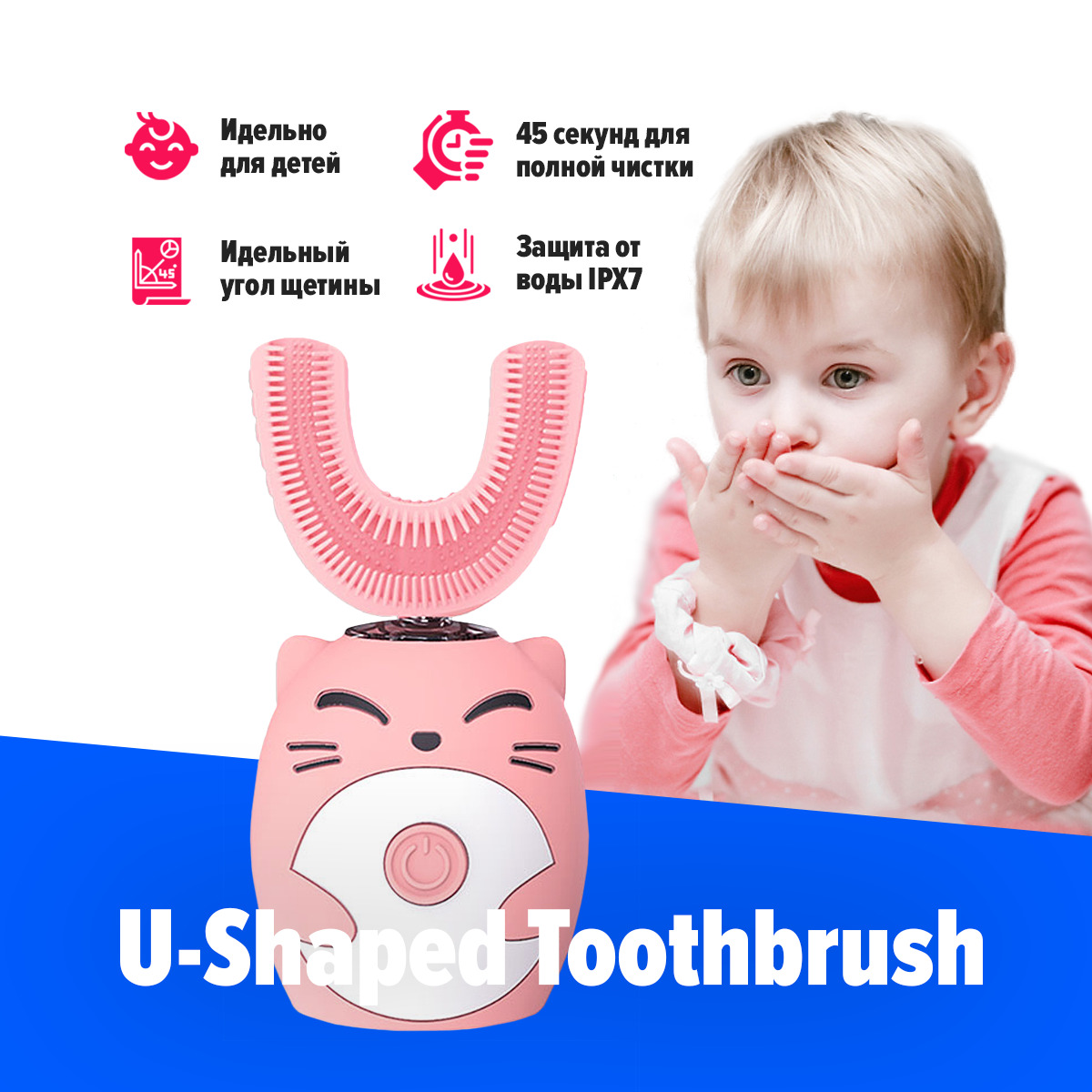Прибор для чистки зубов Mosoptom U Shaped Котенек , розовый
