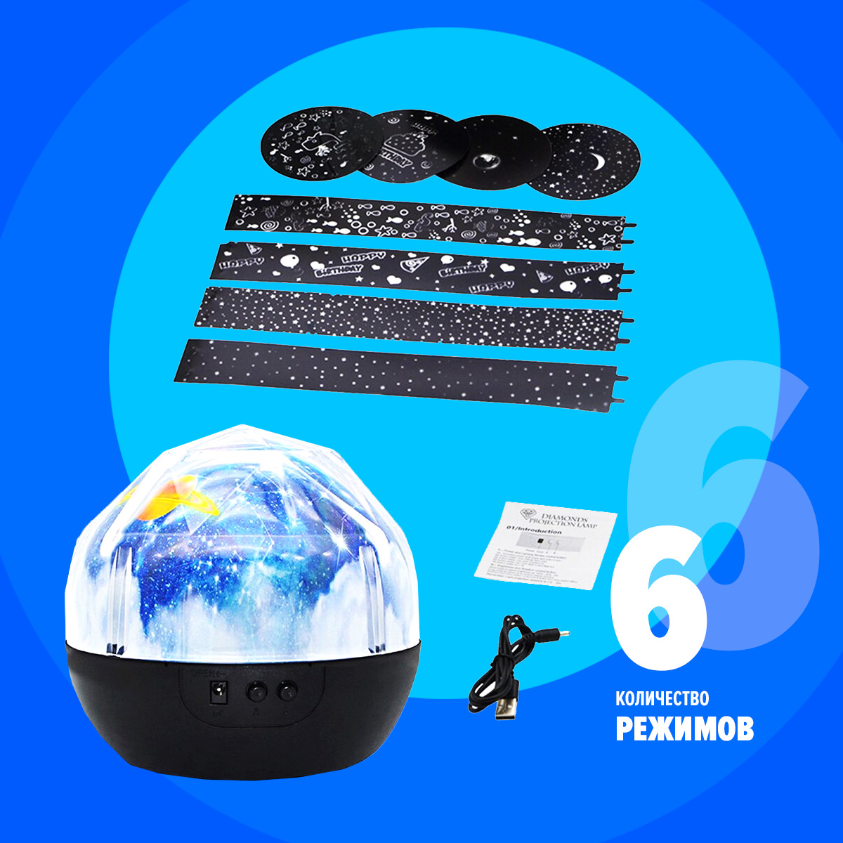 Вращающийся светильник, ночник-проектор "Вселенная" "Космос" "Звездное небо". Уцененный товар