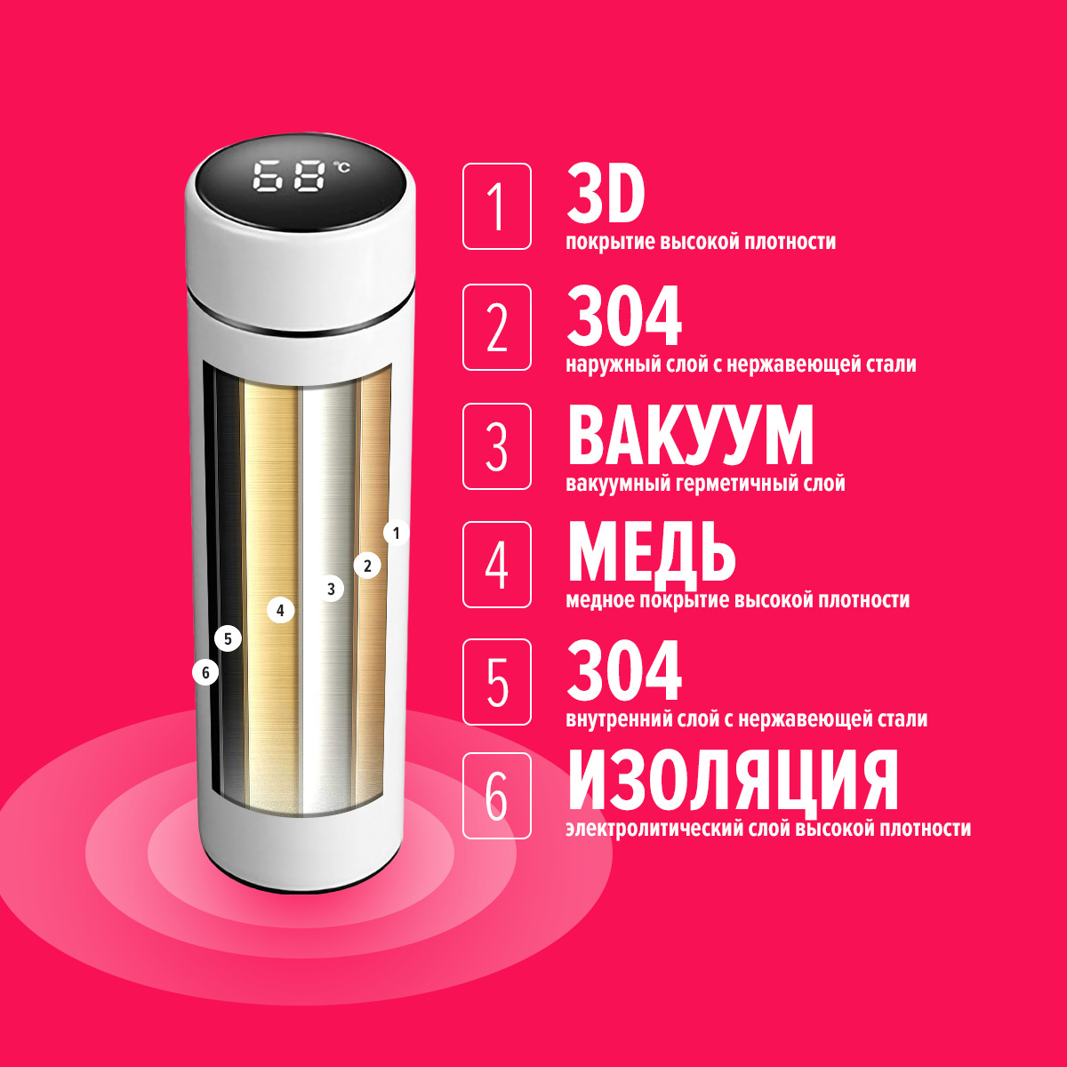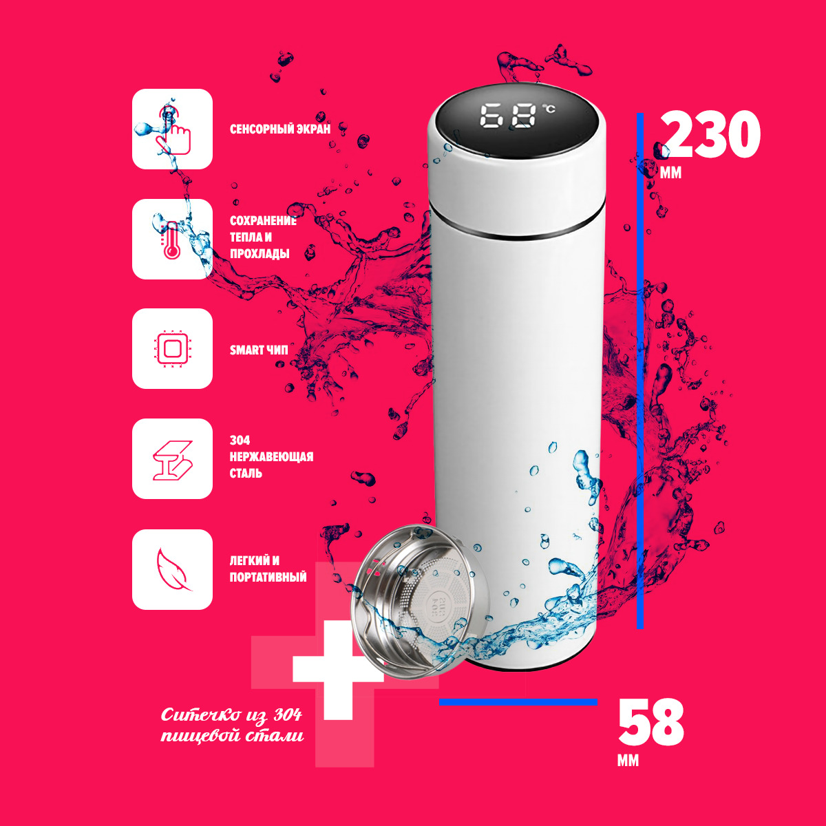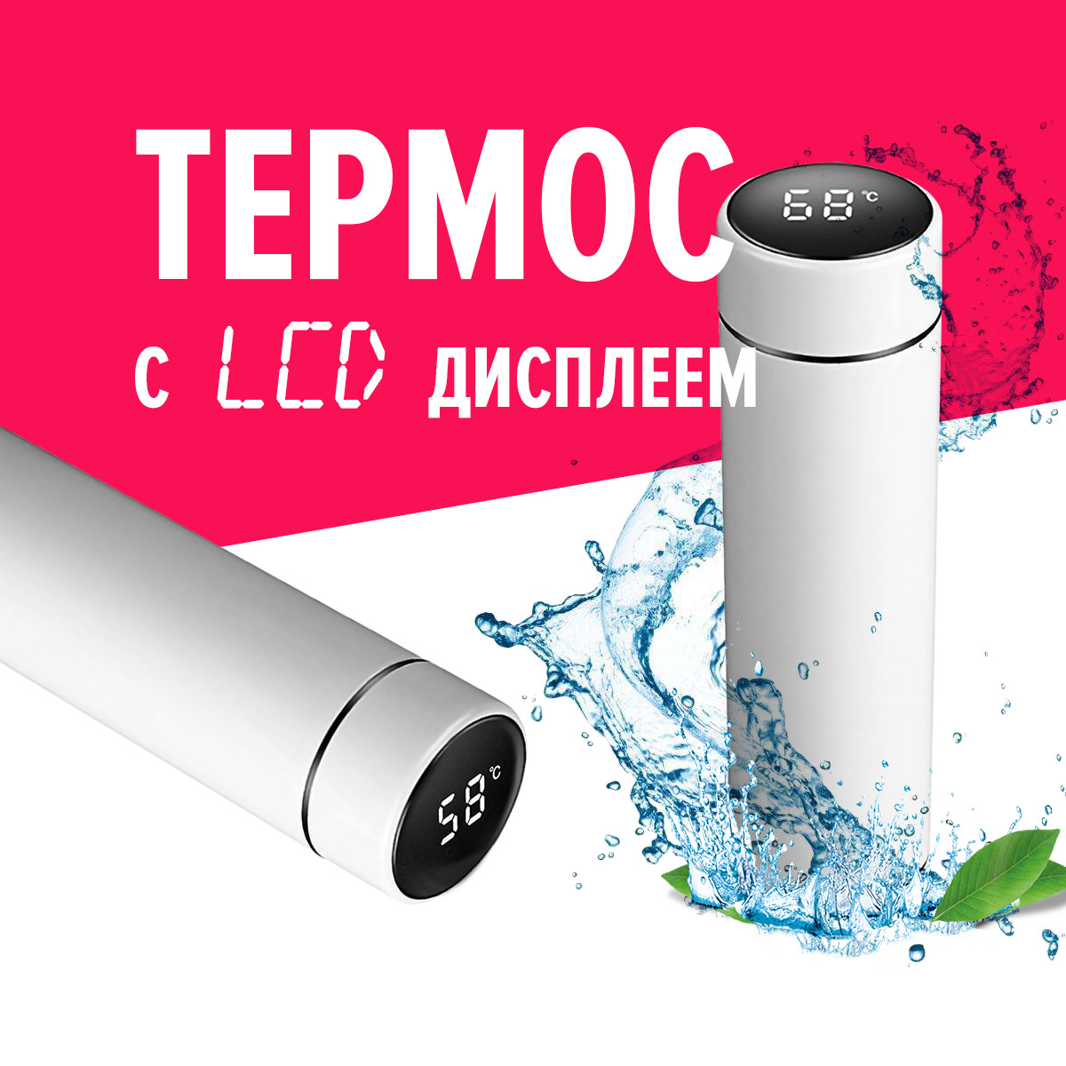 Термос с помпой, Термос Ударопрочный корпус, С термометром, С LCD дисплеем Mosoptom "Белый", 0.48 л