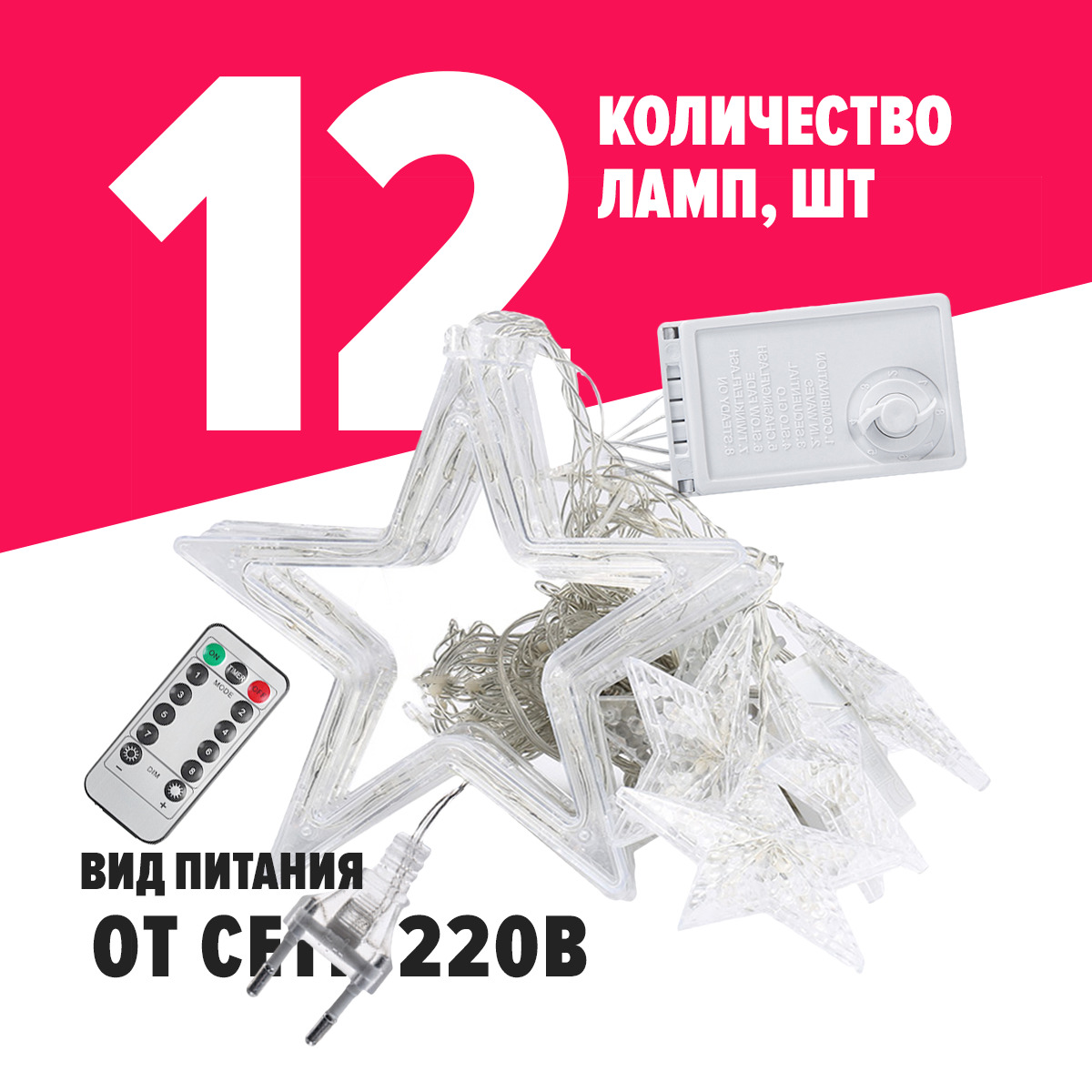 Электрогирлянда интерьерная Звезды Mosoptom Светодиодная 12 ламп, 3 м, питание От сети 220В, 1 шт