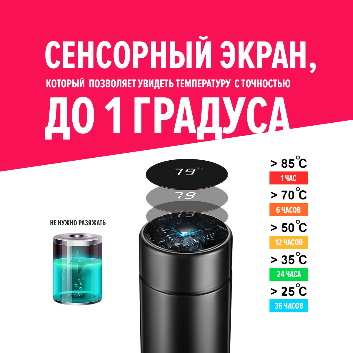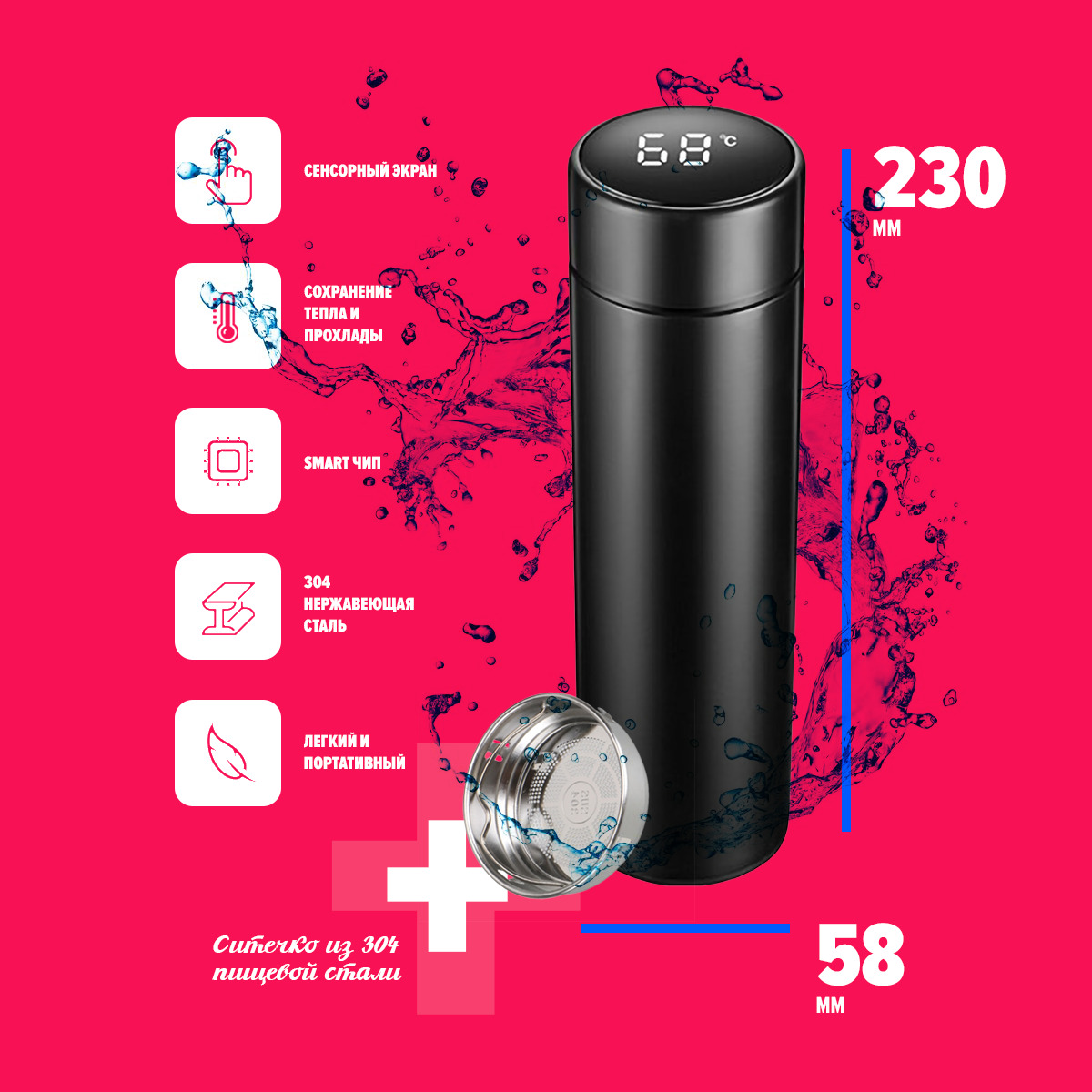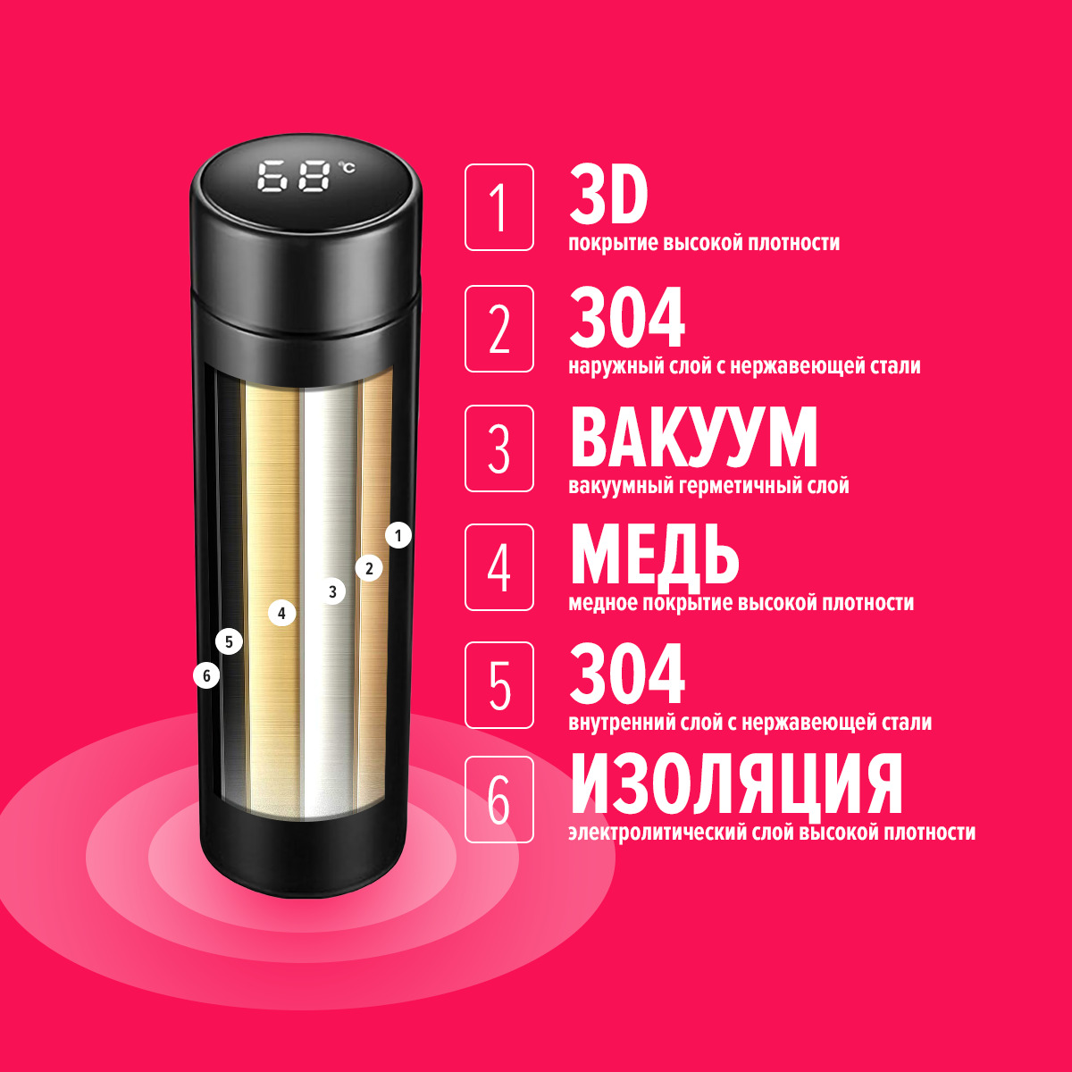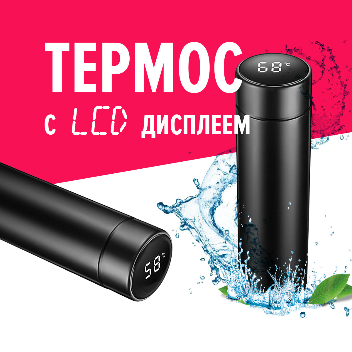Термобутылка, Термос Вакуумный, Непроливайка, С LCD дисплеем Mosoptom "Черный", 0.48 л