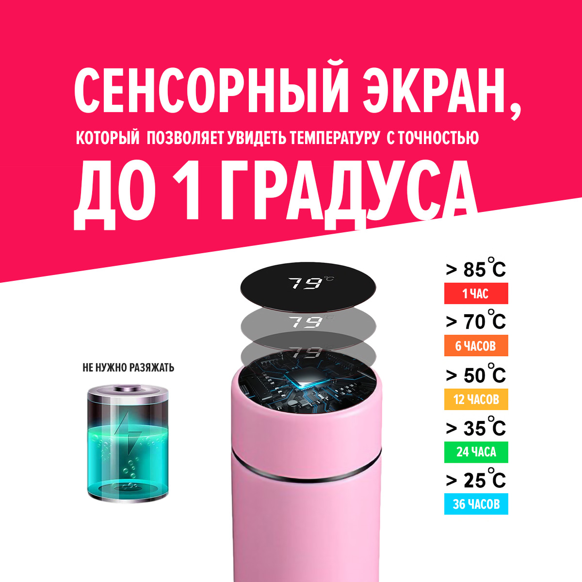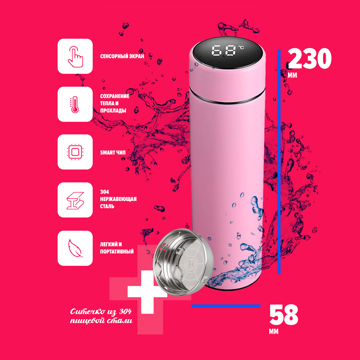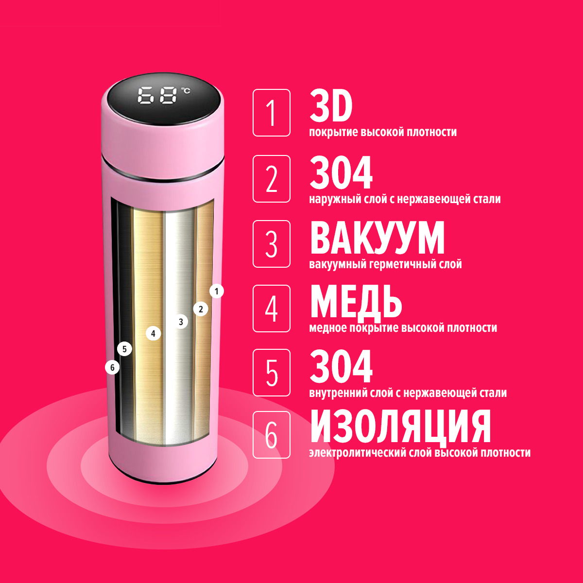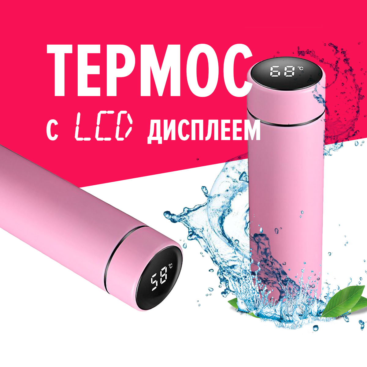 Термос с помпой, Термос Ударопрочный корпус, С термометром, С LCD дисплеем Mosoptom "Розовый"