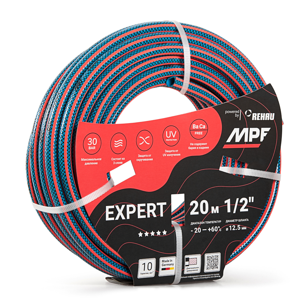 Шланг поливочный армированный MPF, ПВХ, 1/2", 20 м, REHAU (Германия)
