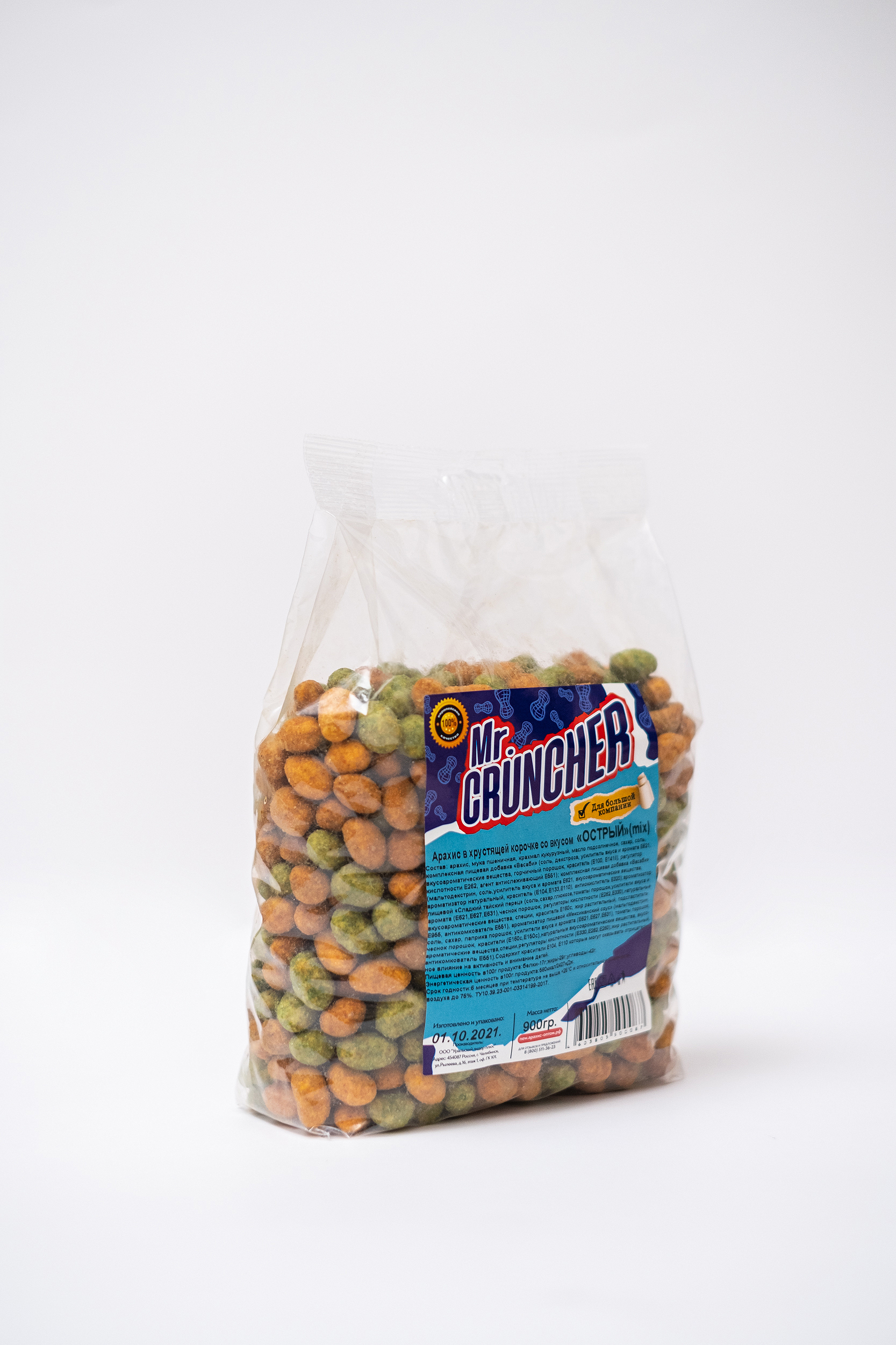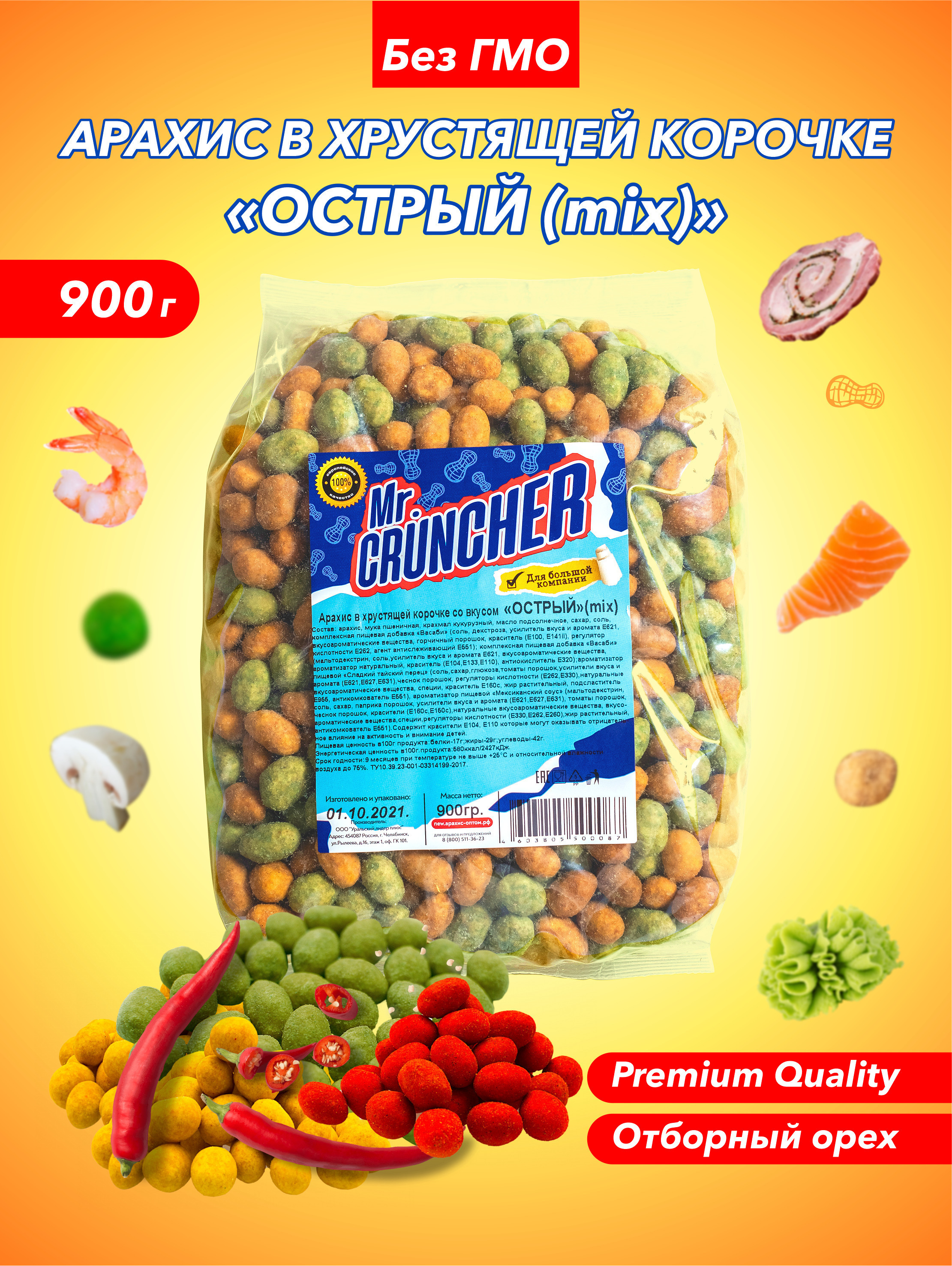 Арахис в хрустящей корочке Mr. Cruncher / продукты к пиву / арахис в глазури острый МИКС (Васаби, Чили, Пикантный Мексиканский соус), 900гр