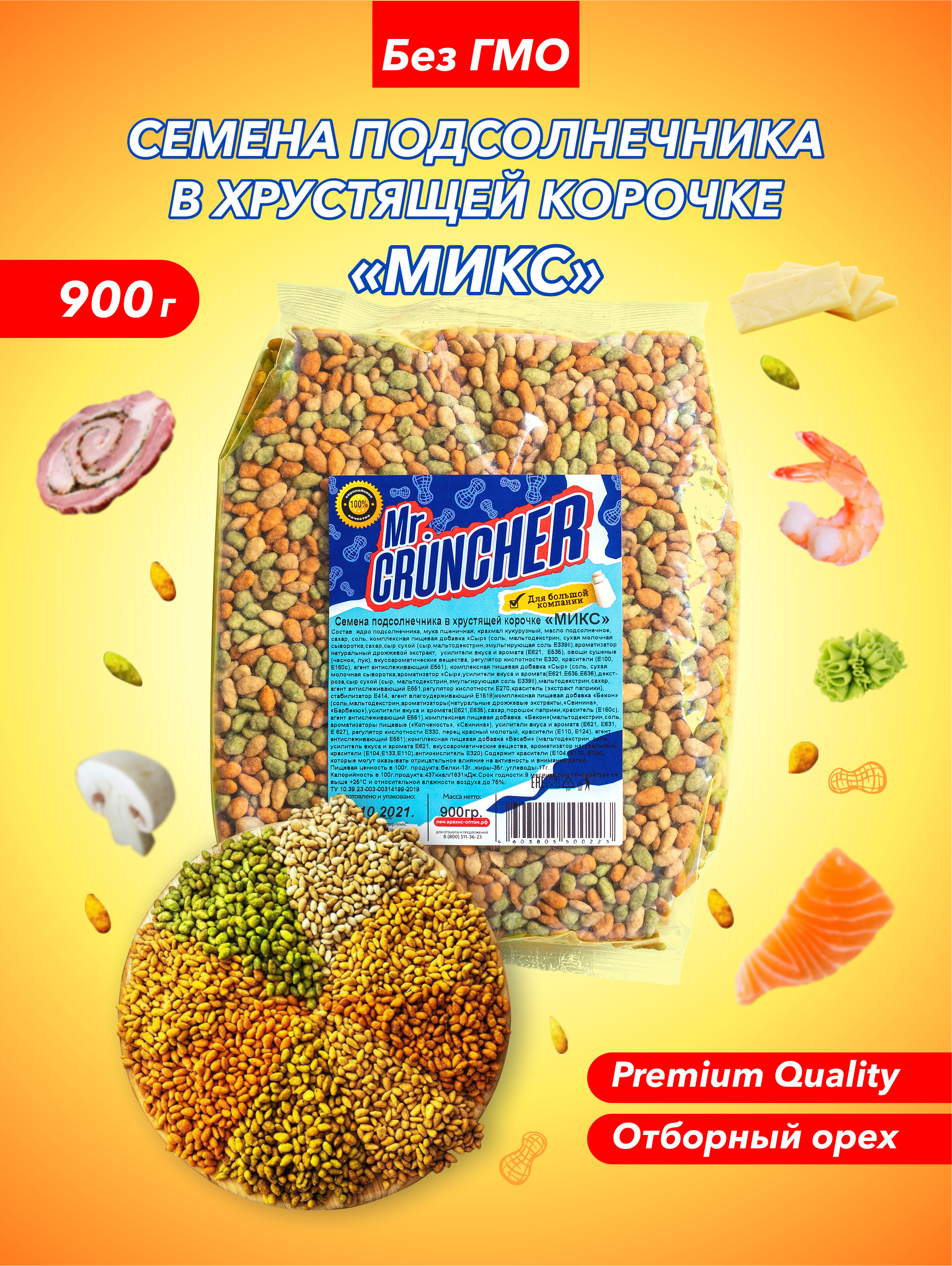 Семена подсолнечника Mr. Cruncher в хрустящей корочке / продукты к пиву / семечки в глазури (MИКС васаби, сыр, бекон), 900гр