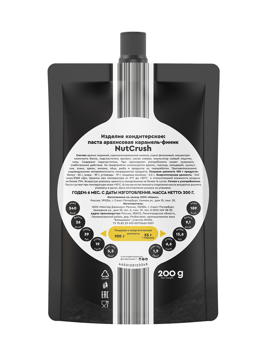 Протеиновая арахисовая паста Nut Crush "Сливочное полено" с карамелью и финиками 200гр