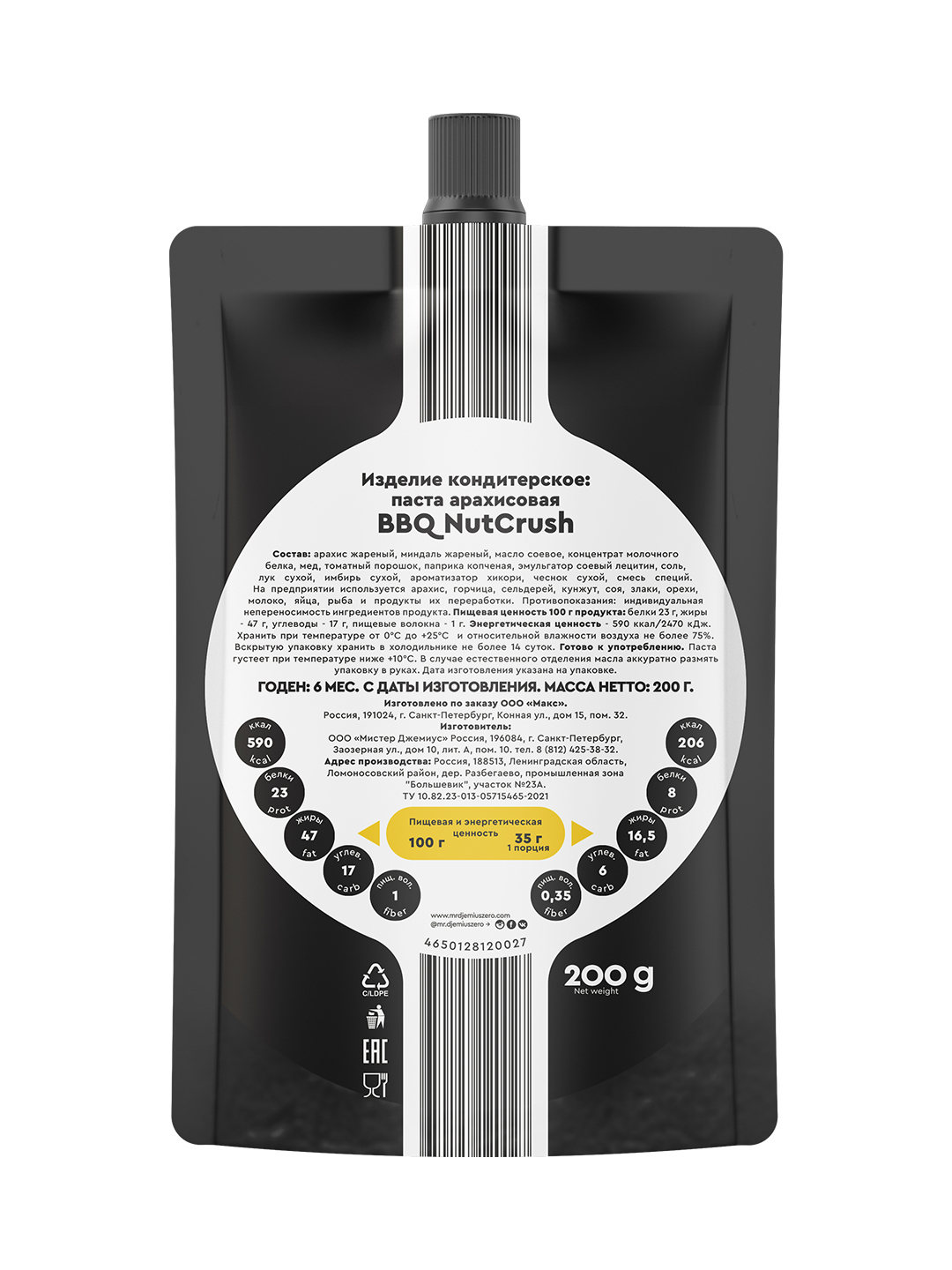 Низкокалорийный соус Mr.Djemius ZERO "Барбекю" 330г