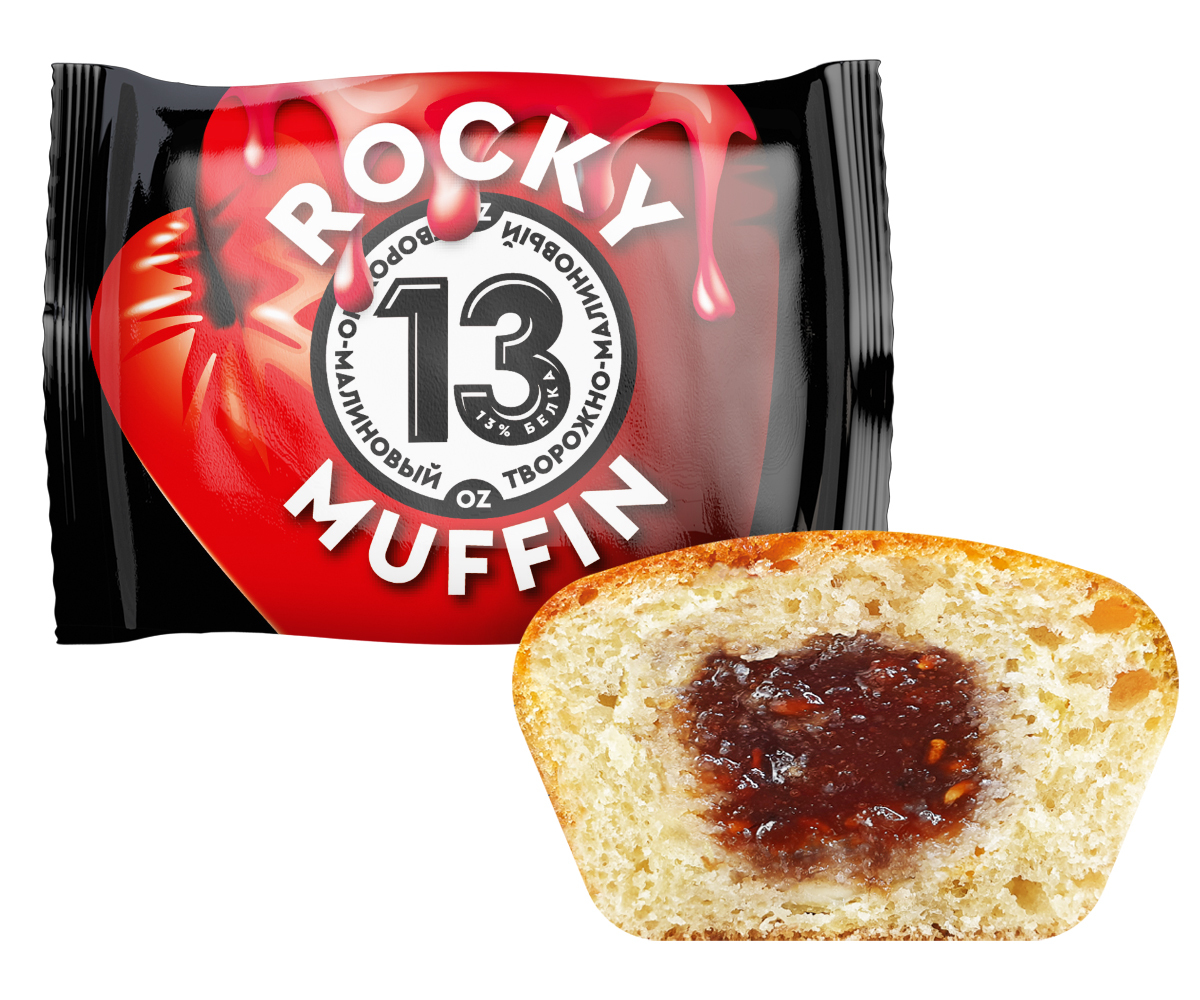 Маффин без сахара "Творожный с малиновой начинкой " ROCKY MUFFIN" 8 штук по 55 гр