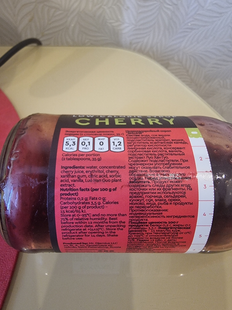 Низкокалорийный сироп без сахара Mr.Djemius ZERO "Вишня" 330гр