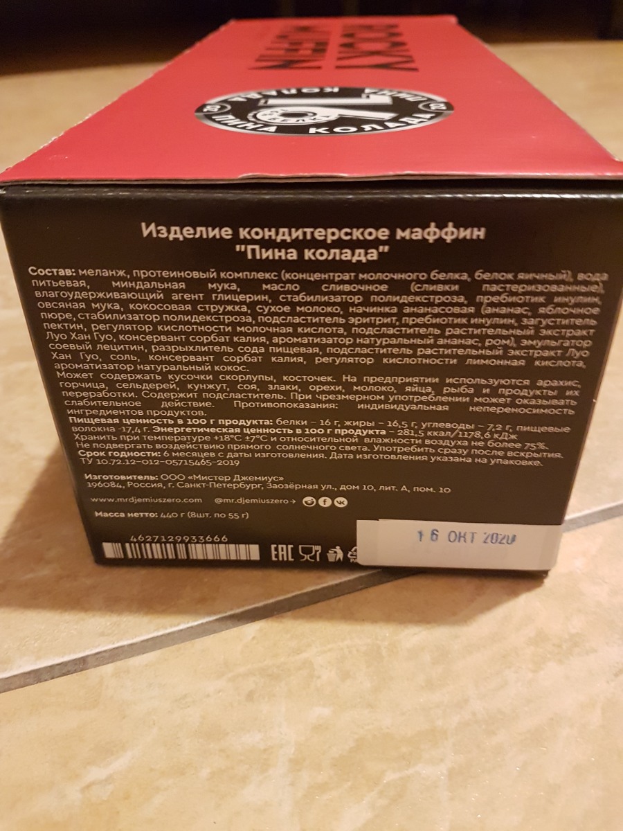 Маффин без сахара Пина Колада Mr.Djemius ZERO, 8шт по 55гр