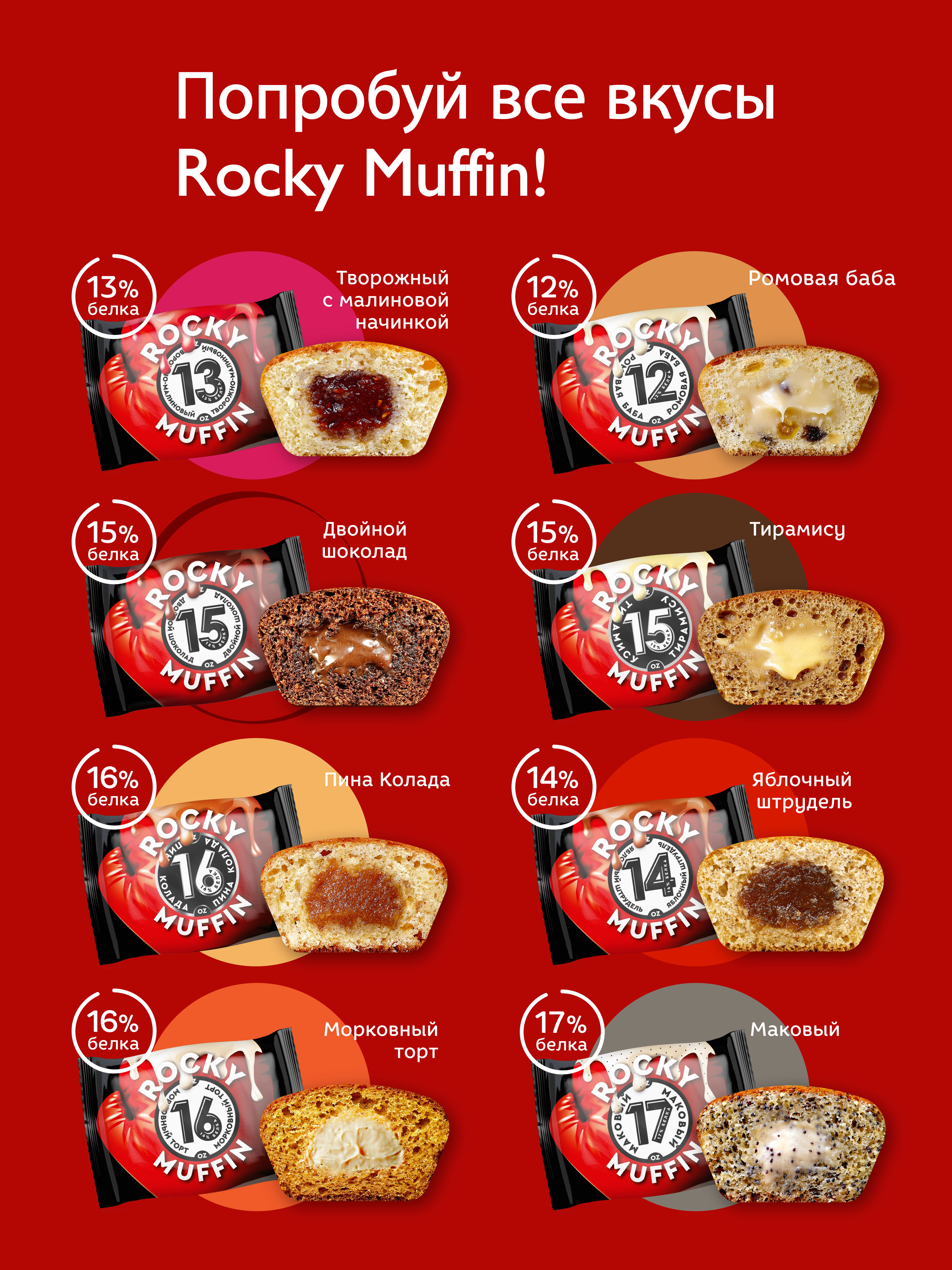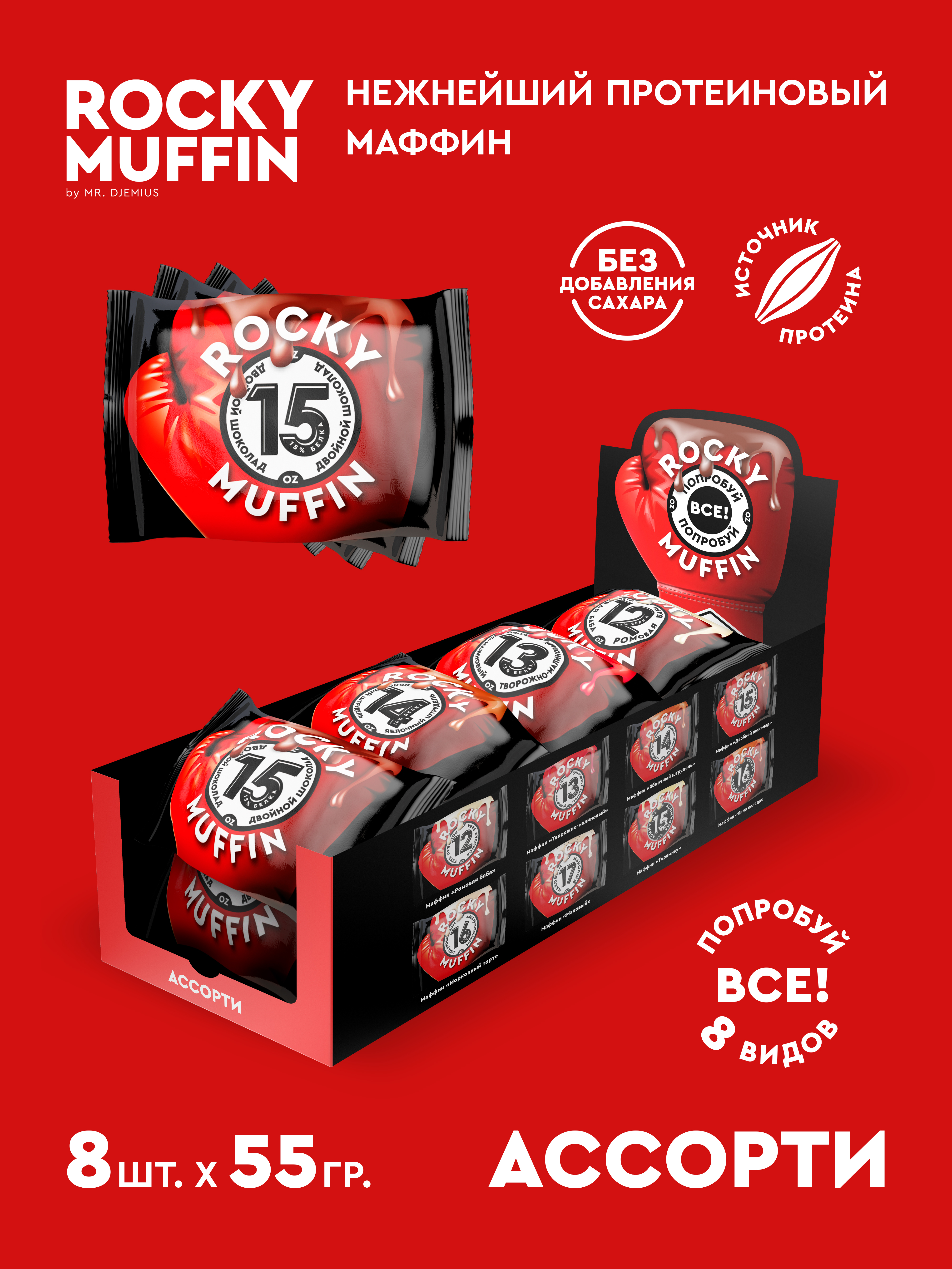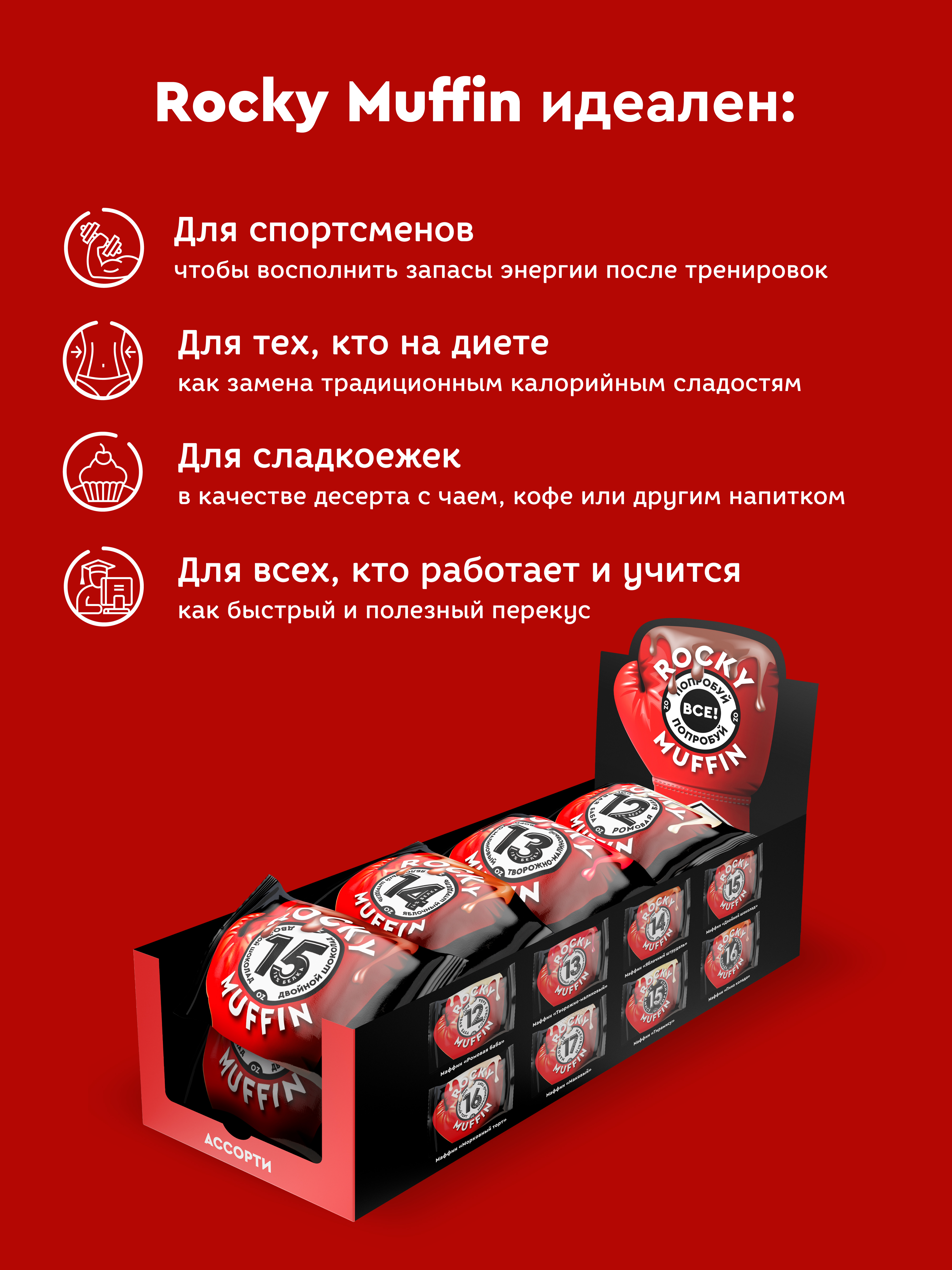 Маффин без сахара Ассорти вкусов ROCKY MUFFIN 8 штук по 55гр