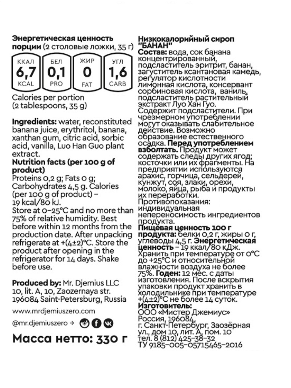 Низкокалорийный сироп Mr.Djemius ZERO "Банан" 330гр