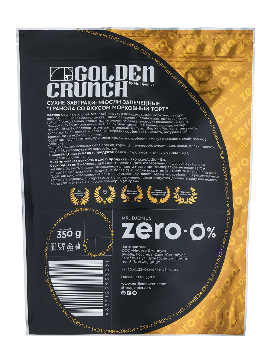 Гранола Golden Crunch со вкусом морковный торт