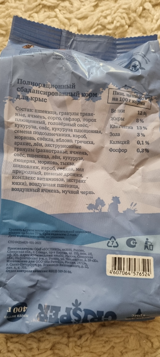 MR.Crisper корм для крыс, 5 шт. по 400 гр.