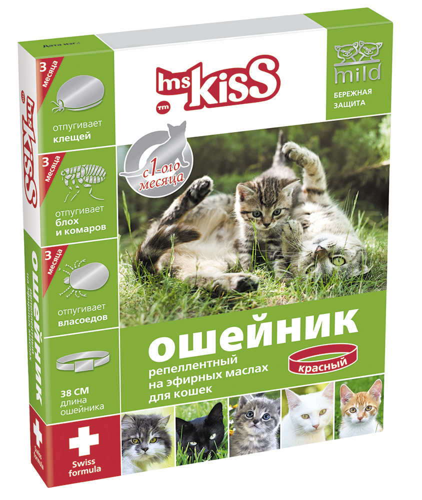 Ms. Kiss Ошейник для кошек репеллентный 38см красный