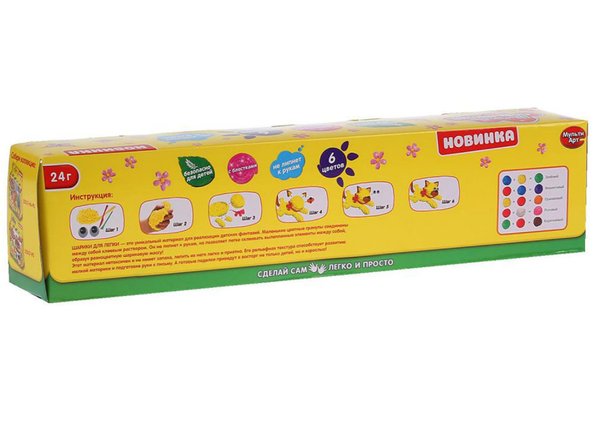 Набор шарикового крупнозернистого не застывающего пластилина с блеском, 6 цветов
