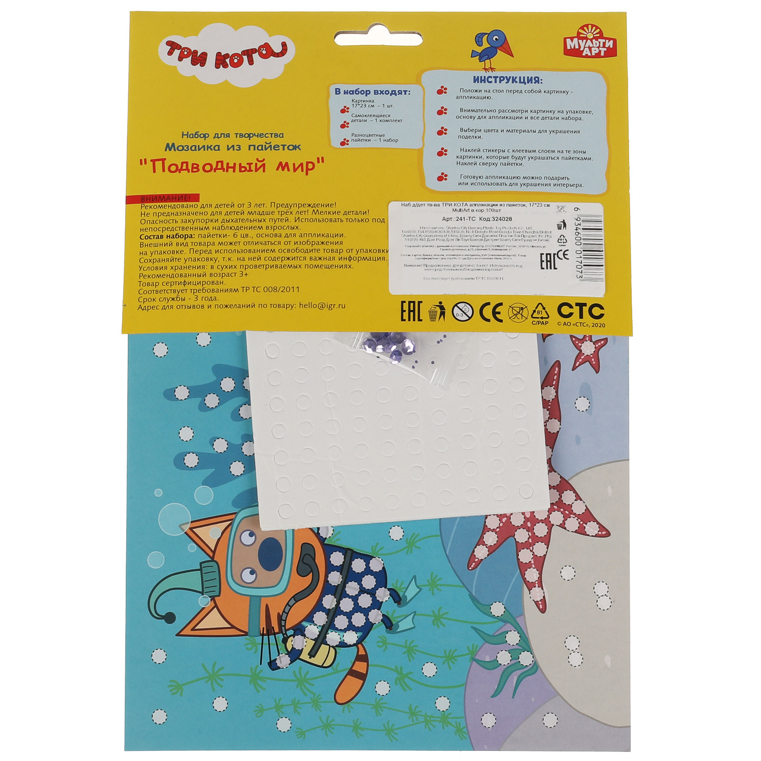 Аппликация из пайеток Мульти Арт Три кота