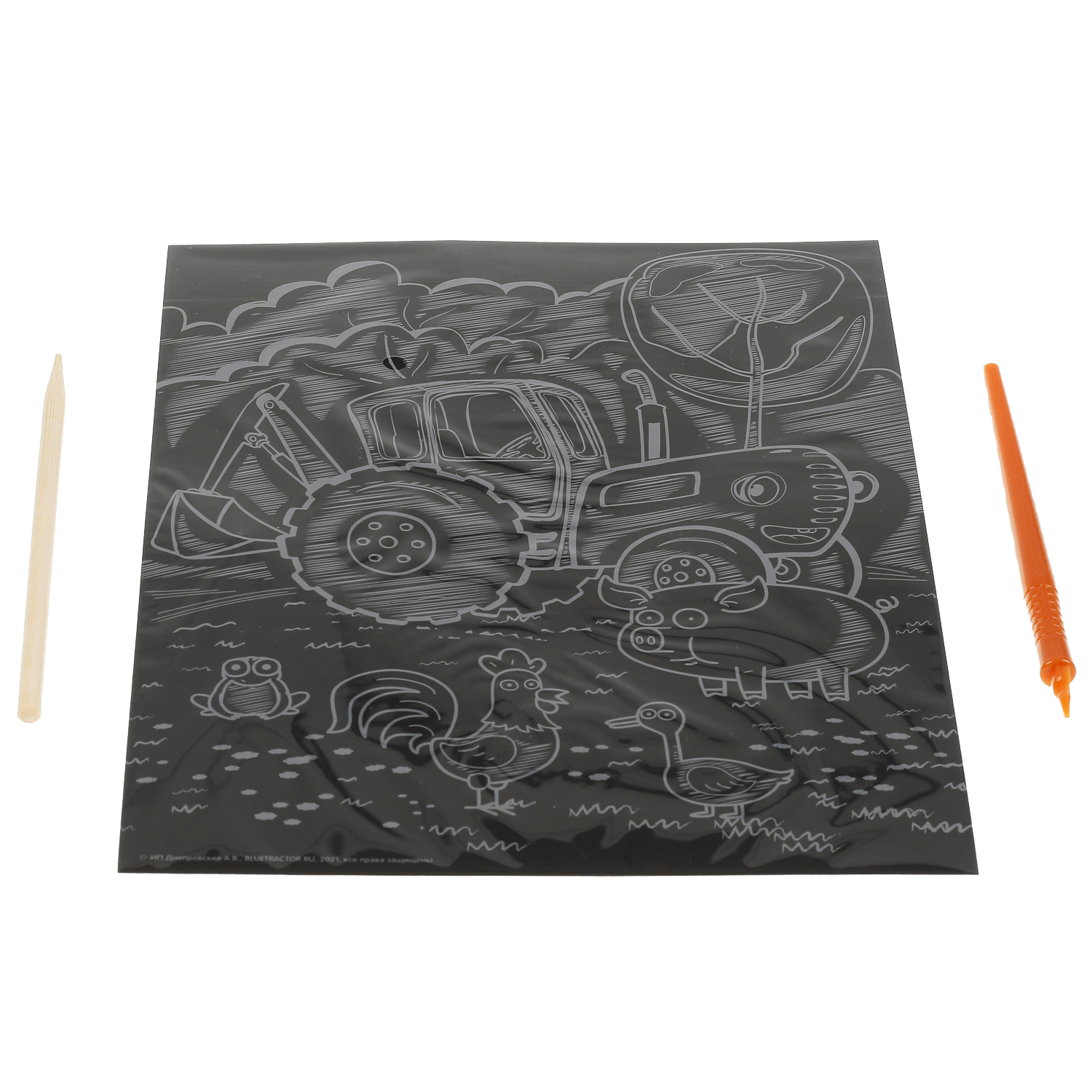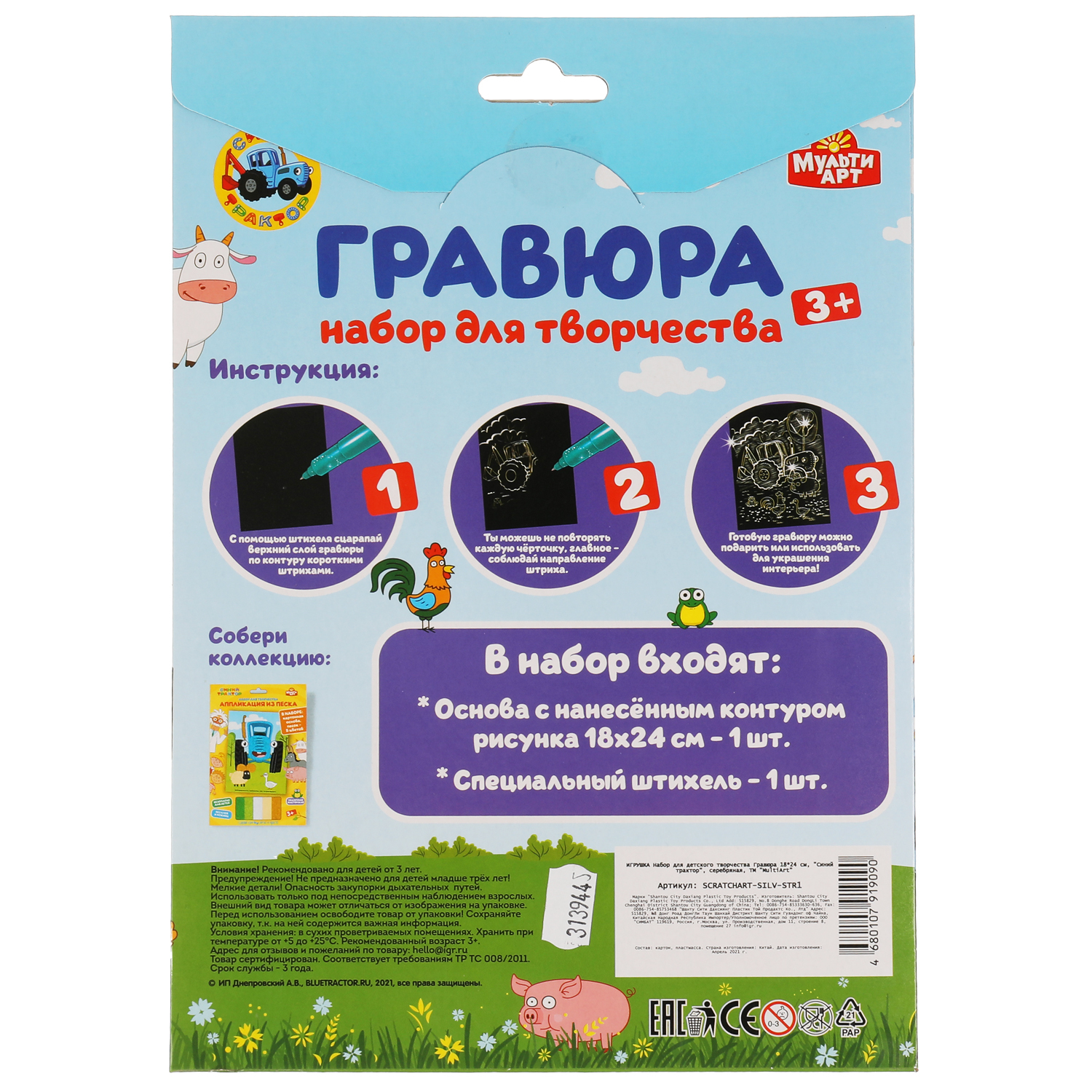 Набор для детского творчества Мульти Арт Синий Трактор гравюра 18*24 см, серебряная