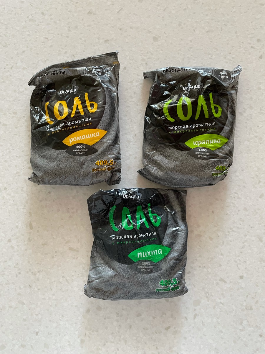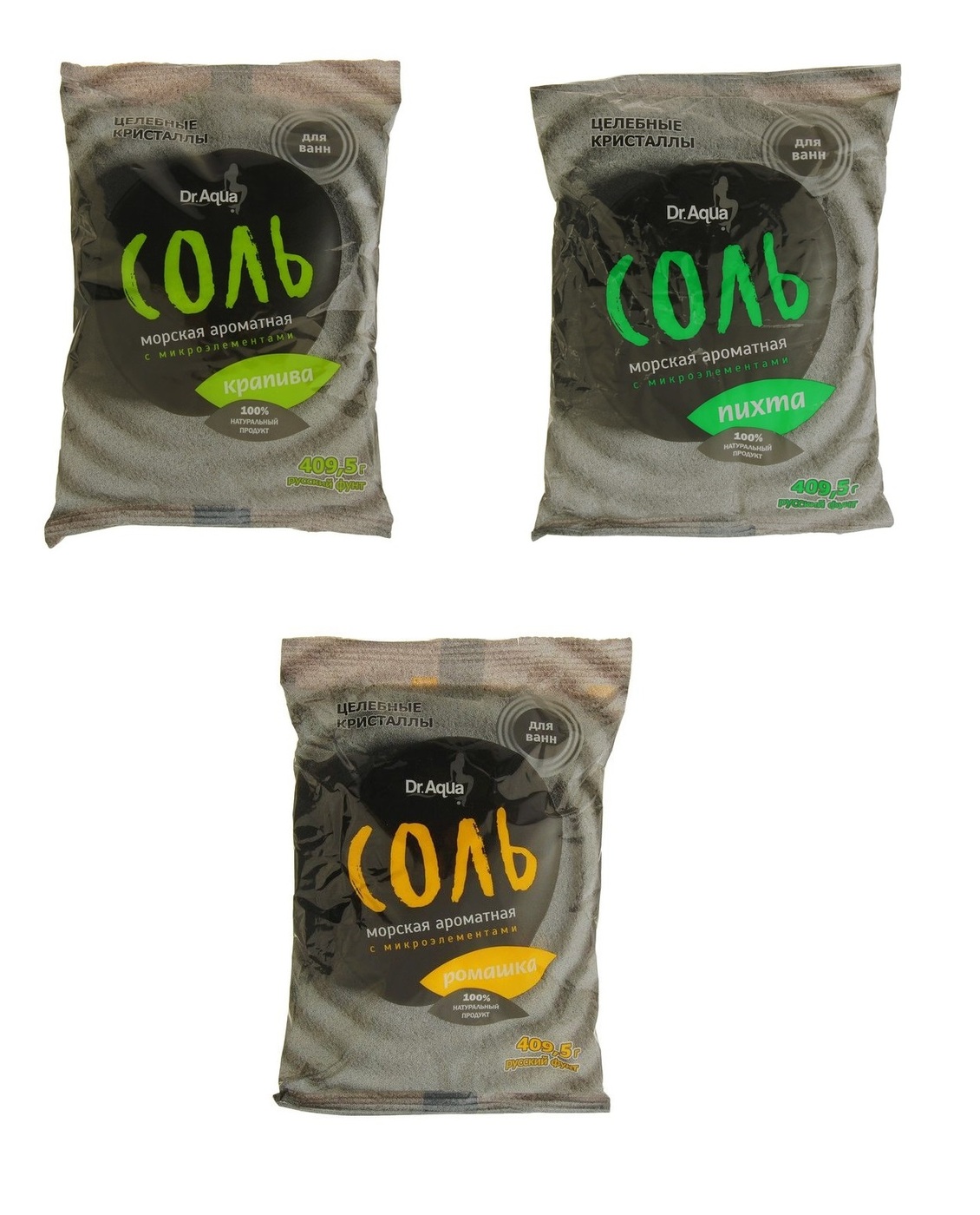 Dr. Aqua Соль морская ароматная (Крапива, Пихта, Ромашка), 3 шт. по 400 гр / Соль для ванны морская