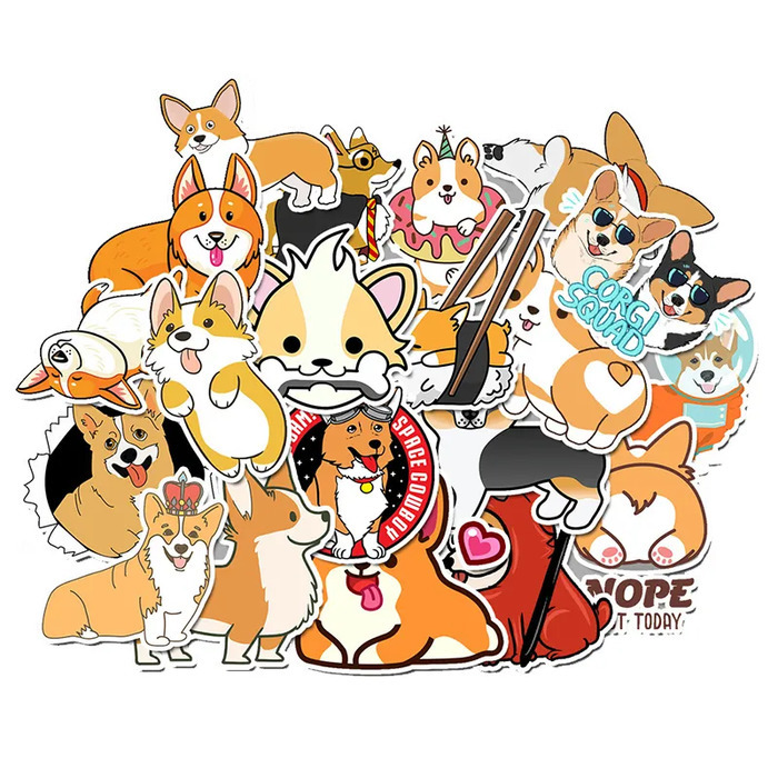 Набор наклеек стикербомбинга/скрапбукинга Корги / Собачки / Щеночки 50 шт.