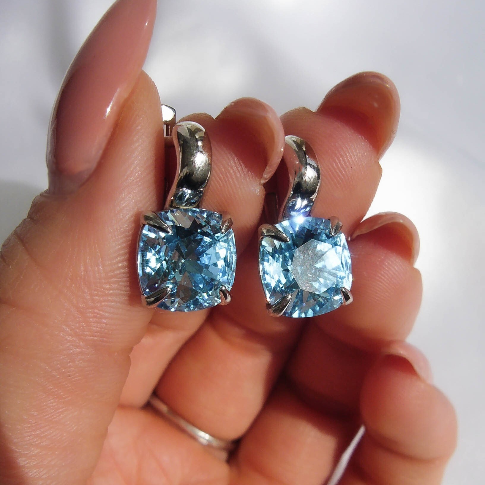 MultiSilver Серьги из серебра с кристаллом Премиум (голубой)