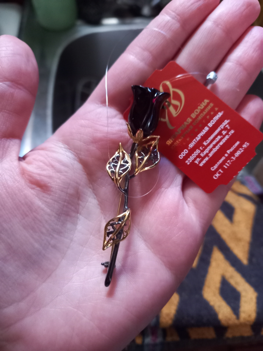 MultiSilver Брошь из серебра с белым янтарем, роза