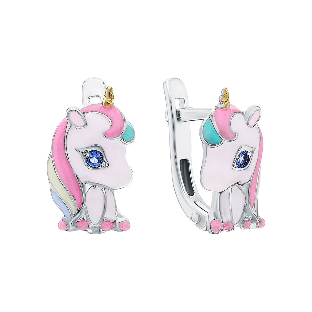 MultiSilver Серьги из серебра детские с цирконом, цветок