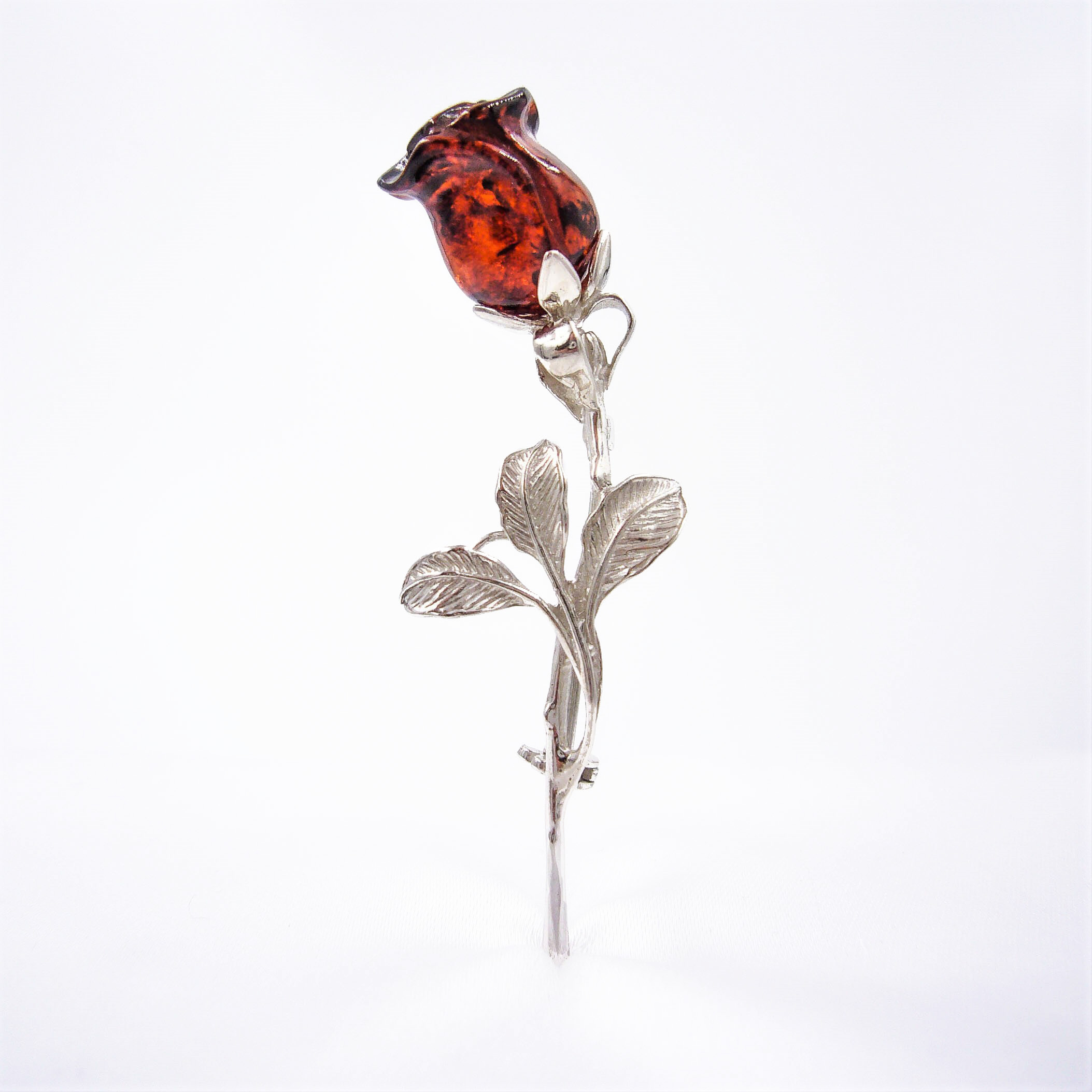 MultiSilver Брошь из серебра с белым янтарем, роза