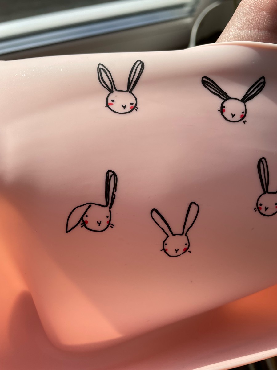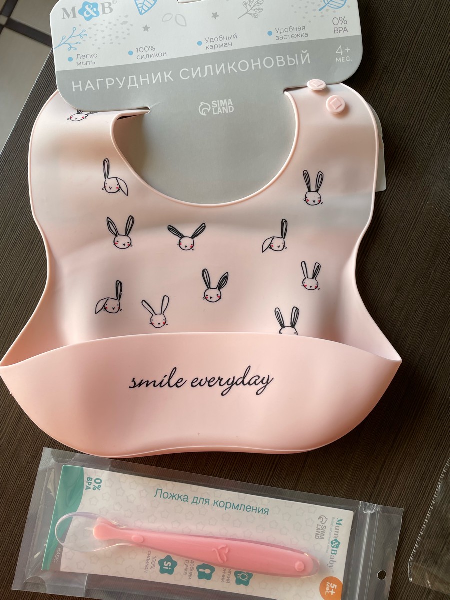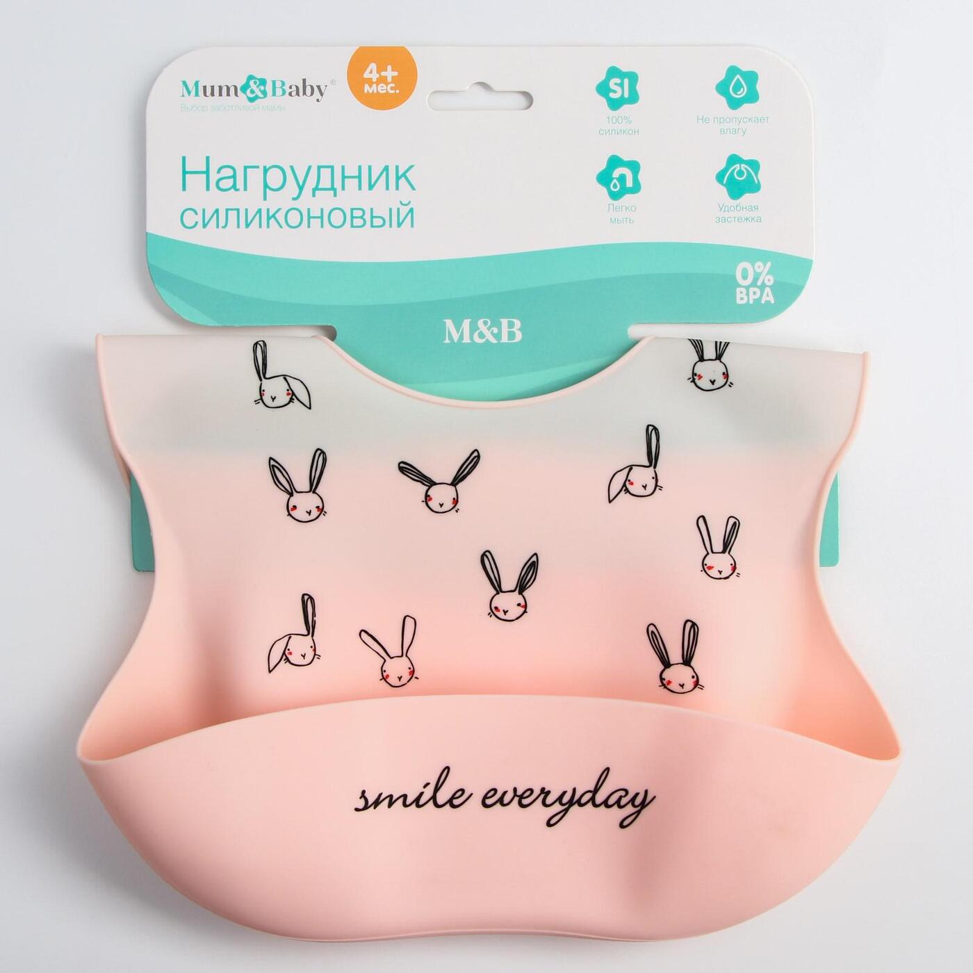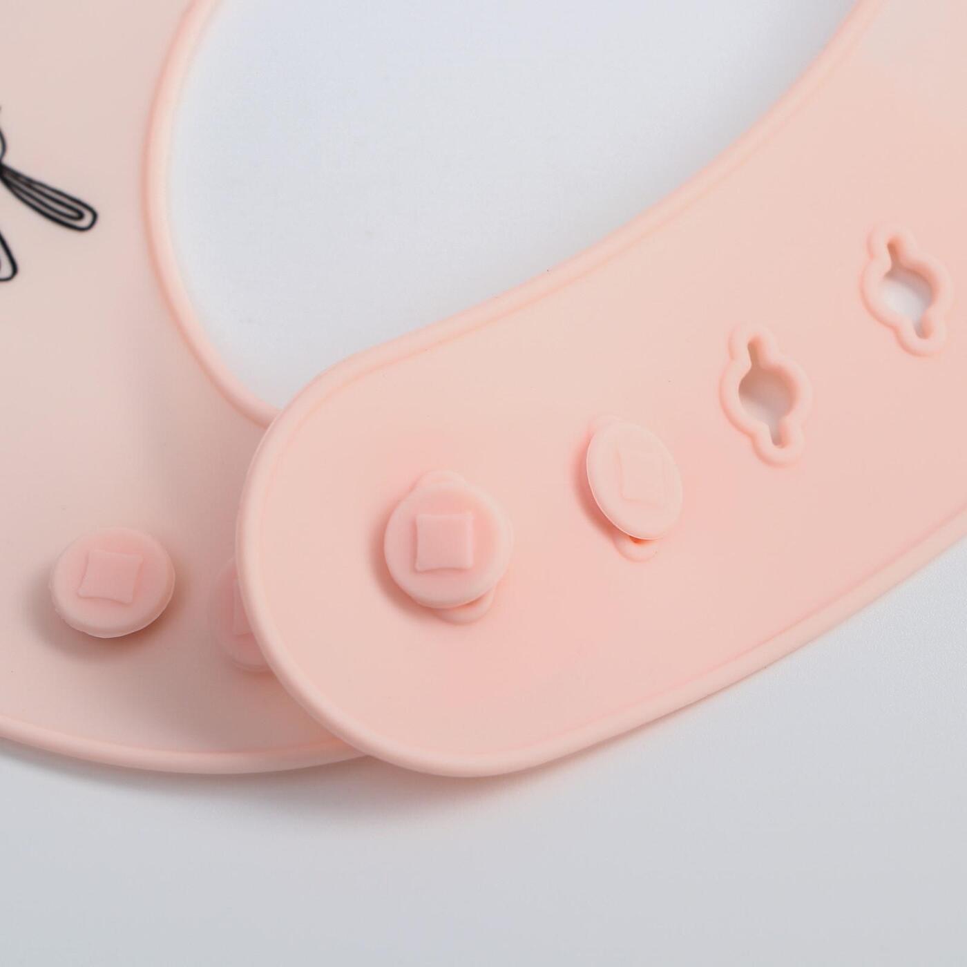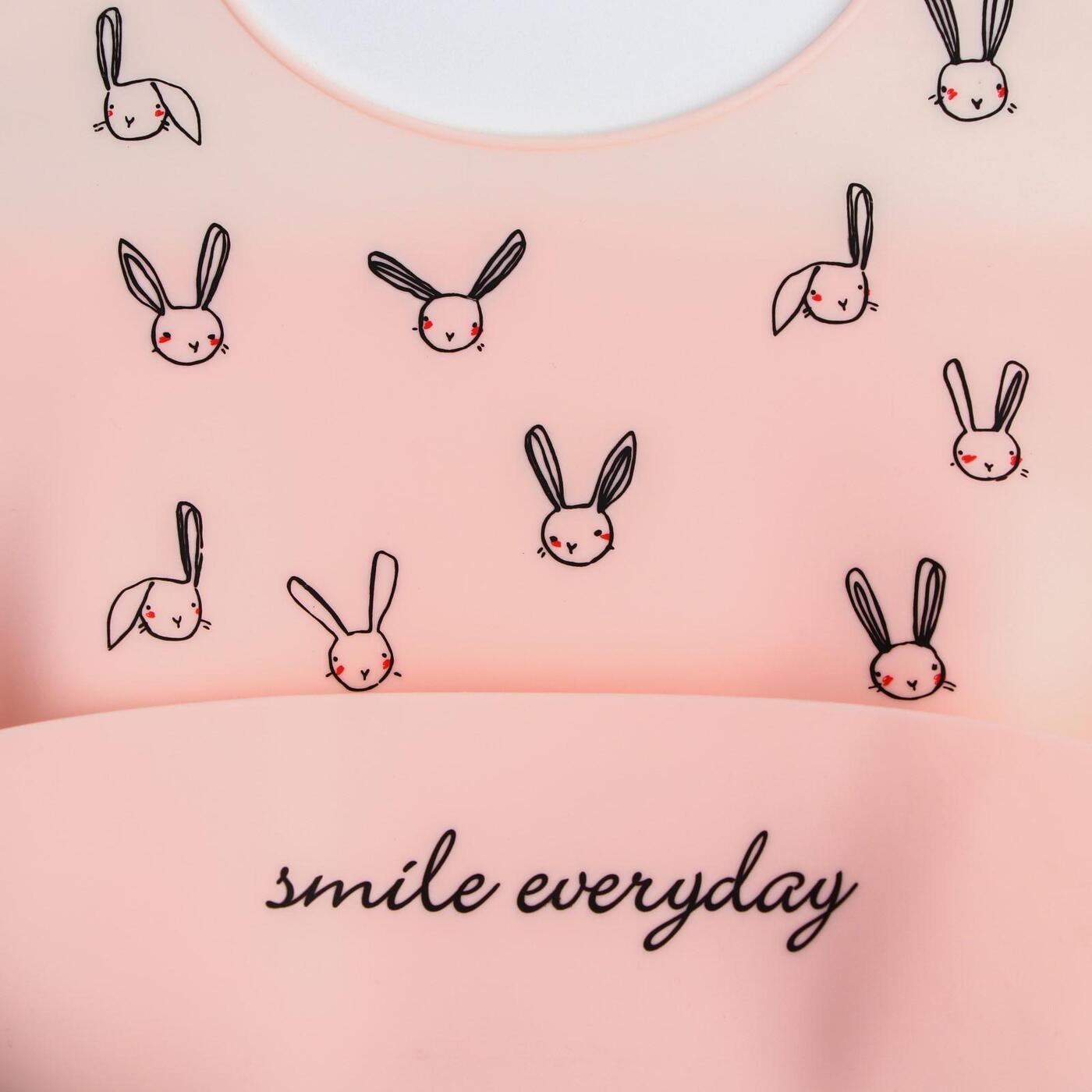 Нагрудник силиконовый, на кнопках, с карманом "Зайцы", цвет розовый