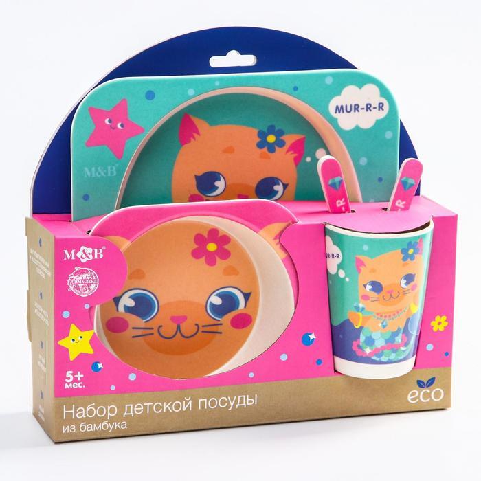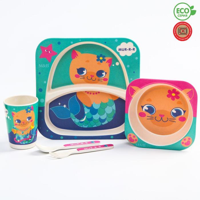 Набор бамбуковой посуды "ТРЕНД. Которусалка": тарелка, миска, стакан, вилка, ложка