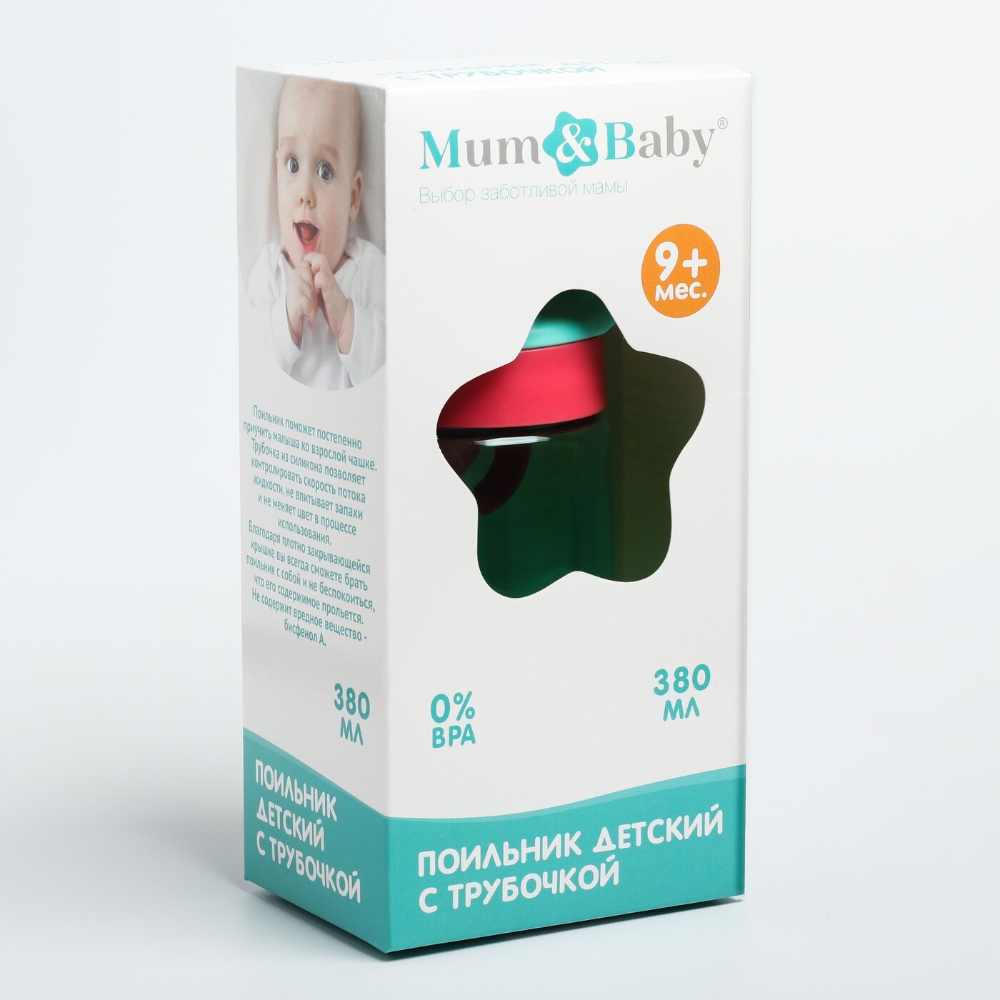 Поильник с трубочкой, мягкий носик, цвет зеленый