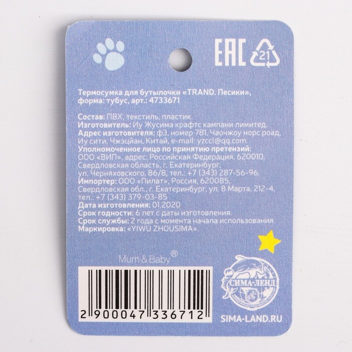 Термосумка для бутылочки Mum&Baby "Trand. Песики", форма тубус