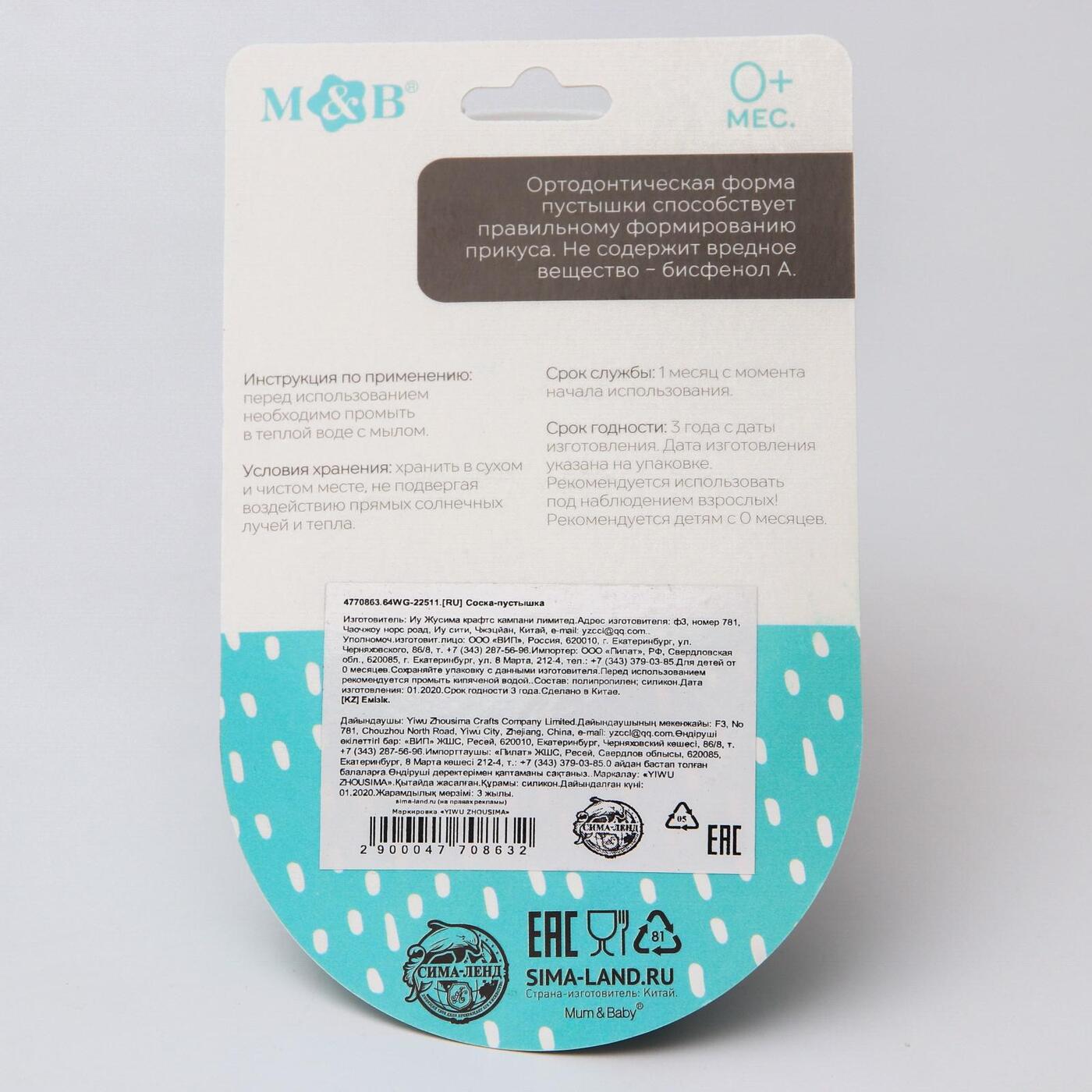 Соска-пустышка ортодонтическая, силикон, от 0 месяцев., цвет бирюзовый