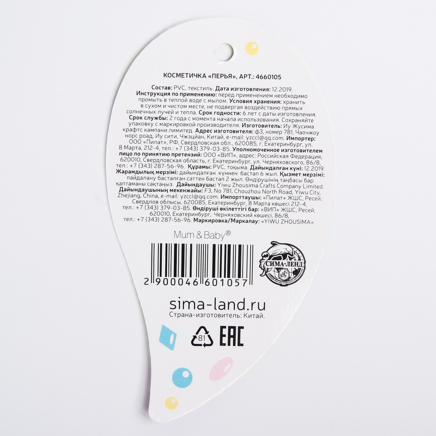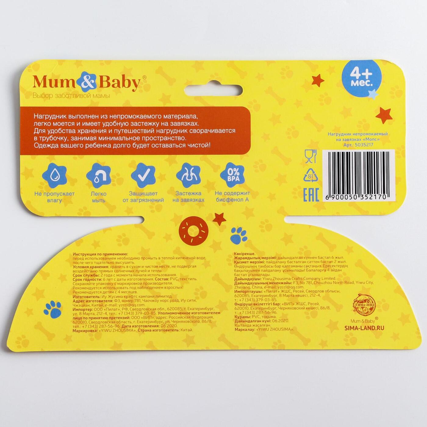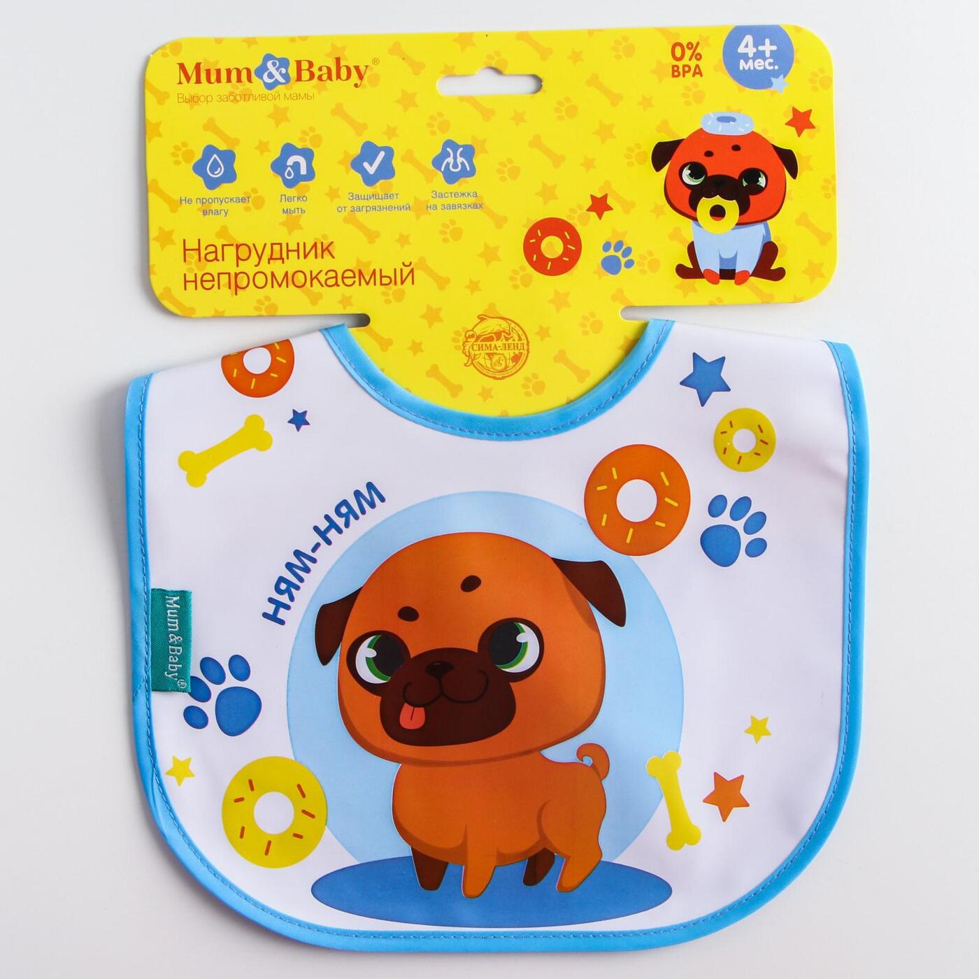 Нагрудник Mum&Baby "Мопс" непромокаемый на завязках