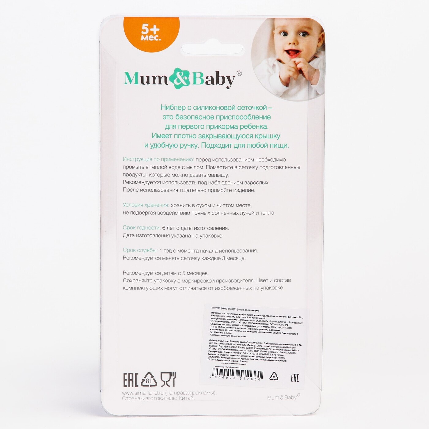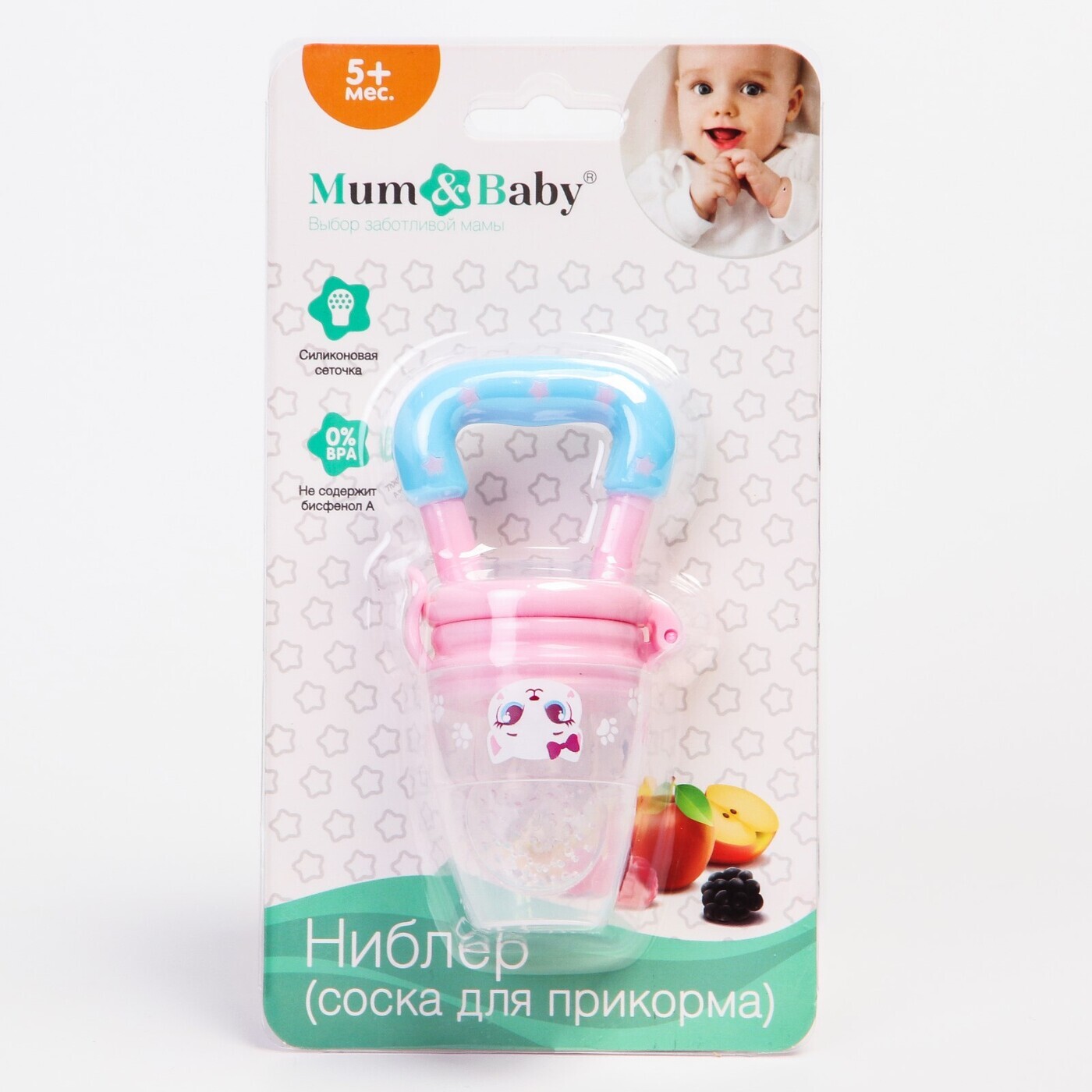 Ниблер Mum&Baby "Самая милая", с силиконовой сеточкой, цвет розовый/голубой