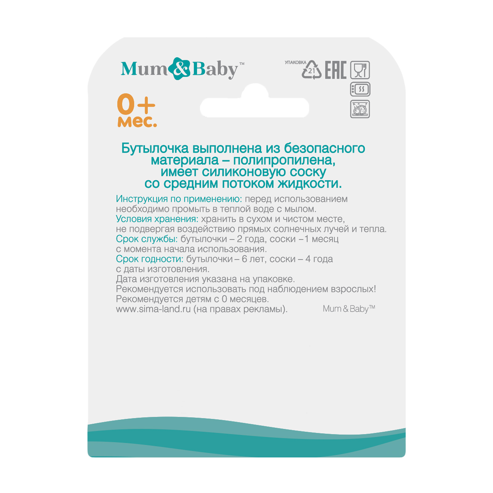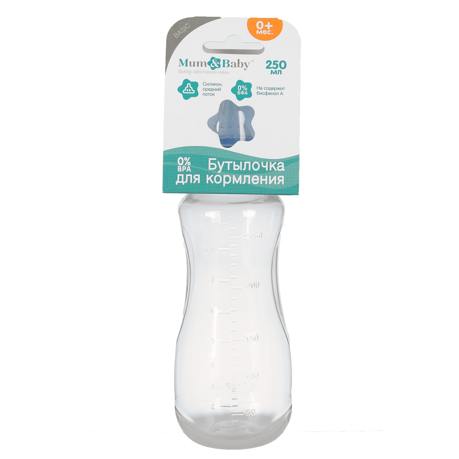 Бутылочка для кормления Mum&Baby детская приталенная, 250 мл, от 0 мес., цвет синий