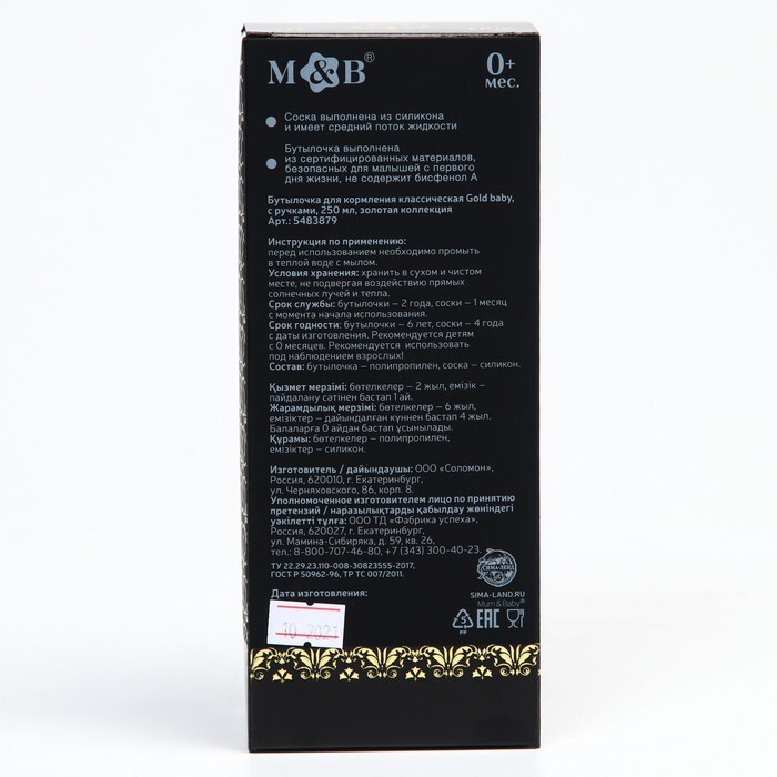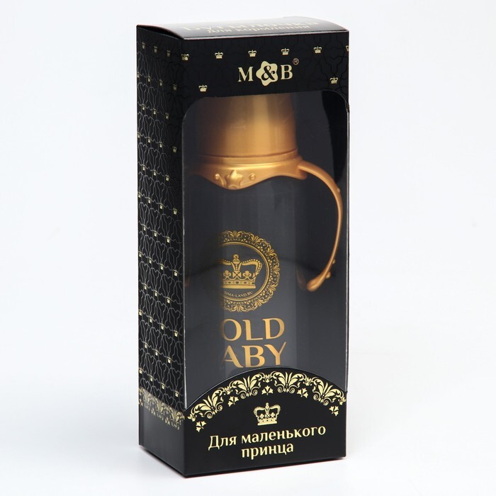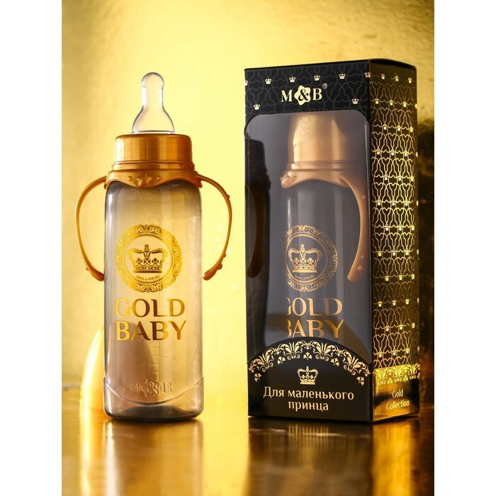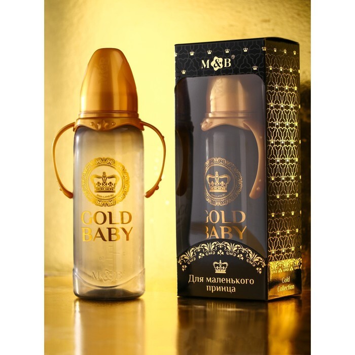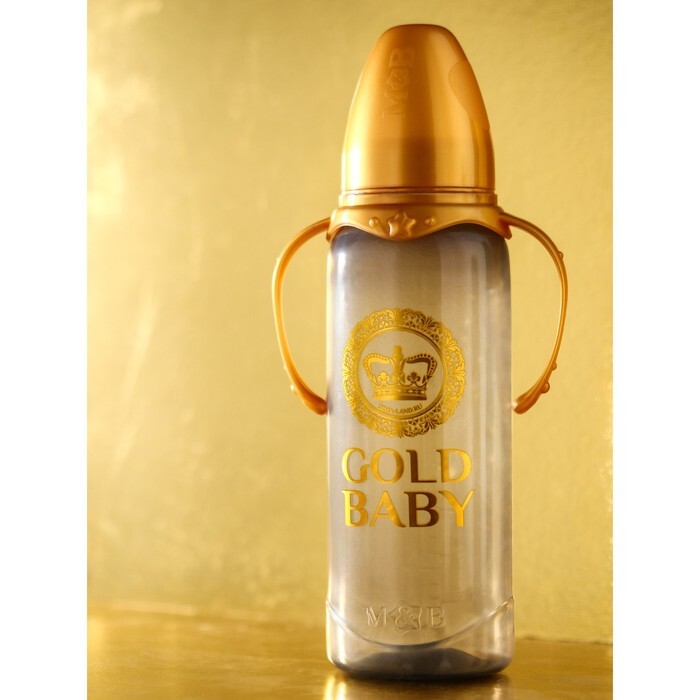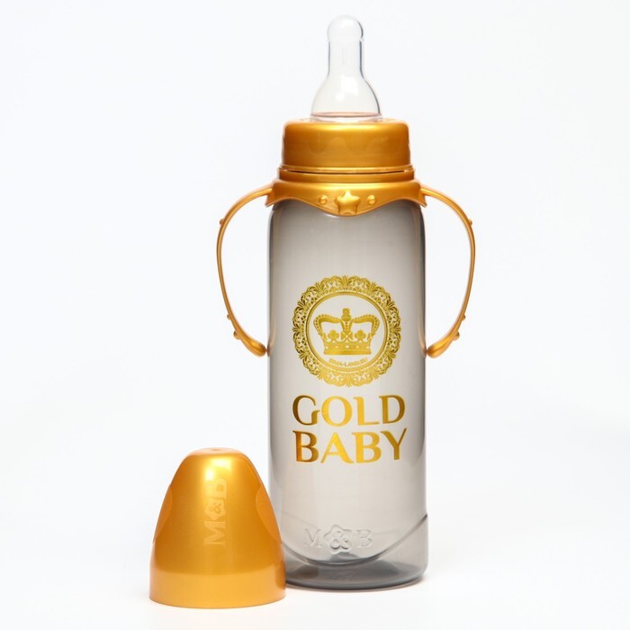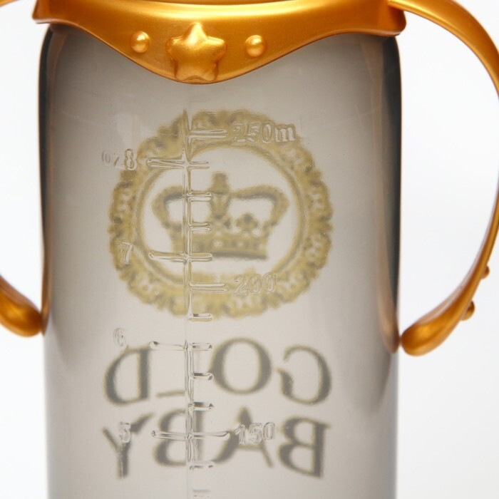 Бутылочка для кормления "Gold baby" классическая, с ручками, 250 мл, Золотая коллекция