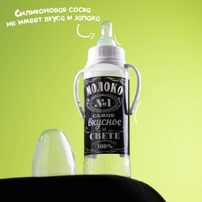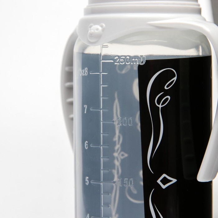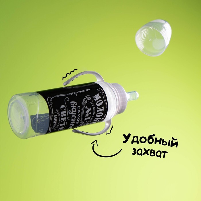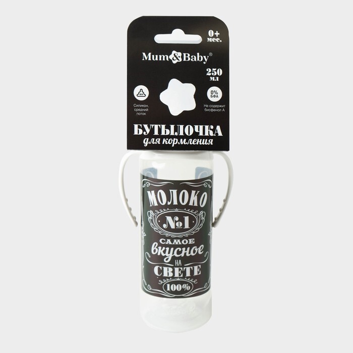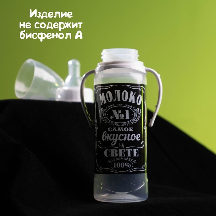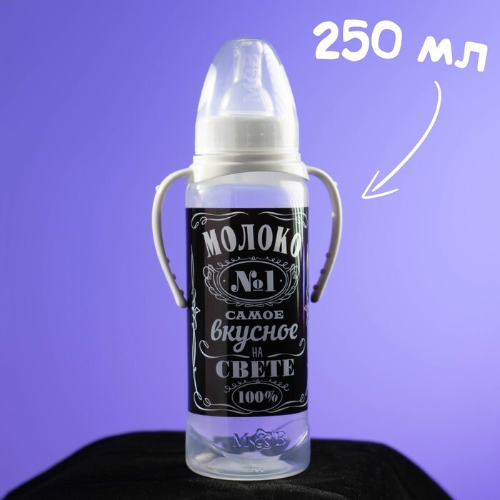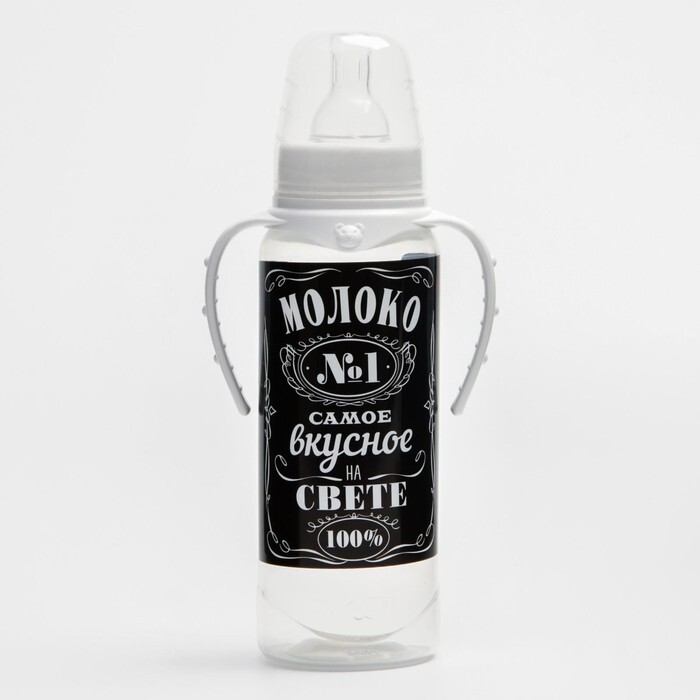 Бутылочка для кормления "Молоко № 1" детская классическая, с ручками, 250 мл, от 0 мес., цвет чёрный