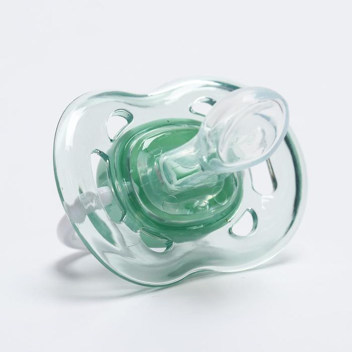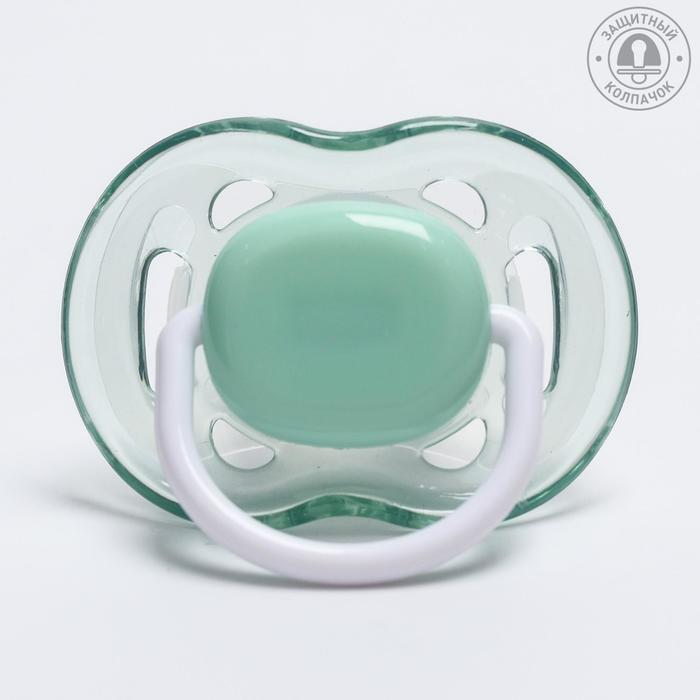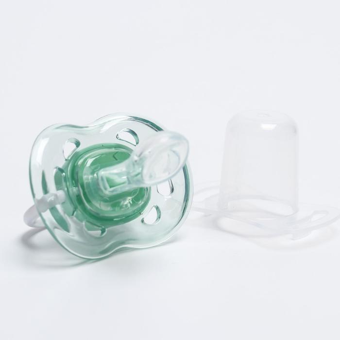 Соска-пустышка ортодонтическая, силикон, от 6 мес., с колпачком, цвет зеленый