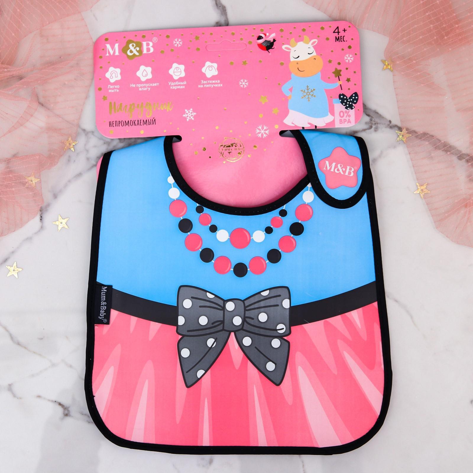 Нагрудник "Снежная нежность" непромокаемый на липучке, с карманом
