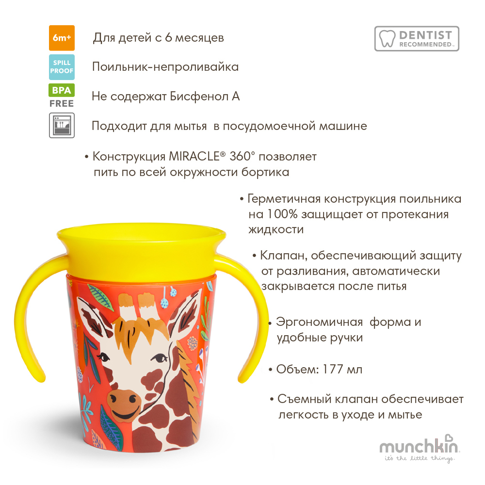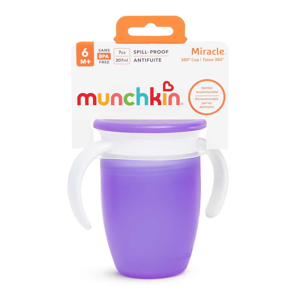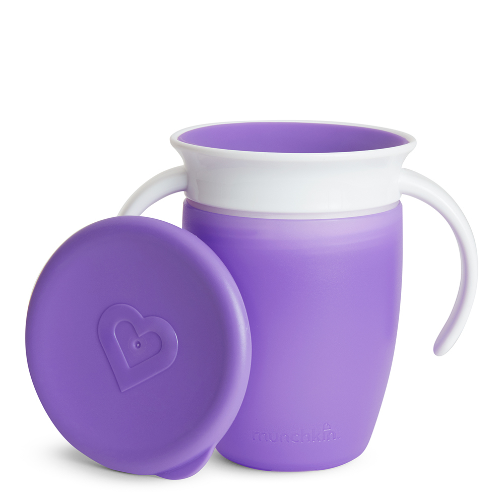 Munchkin поильник с крышкой MIRACLE 360 непроливайка, с ручками Фиолетовый 207мл. 6+